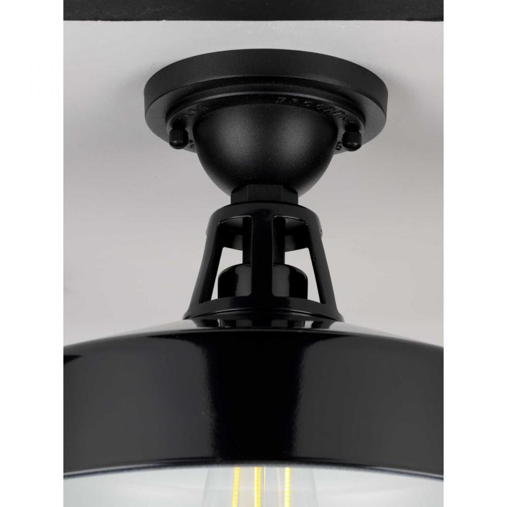 This fun take on the traditional warehouse shade provides excellent task lighting. The generous metal shade is coated in a gorgeous black finish ready to direct a helpful glow. An industrial-style ceiling plate anchors the light fixture in place and adds a touch of urban flair to farmhouse and transitional settings. Dark Sky Friendly.