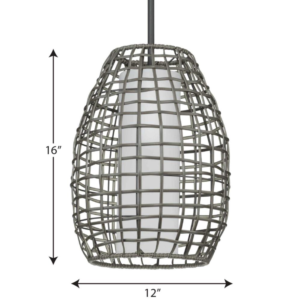 Unite global feel and coastal warmth with the Pawley Collection 1-Light Dark Gray Rattan Coastal Outdoor Hanging Pendant Light. The synthetic dark gray rattan frame has a graceful, lattice-like design that gives the fixture charm and depth. A light source diffuses from within the etched glass shade cradled inside the airy basketweave design offering an organic feel.