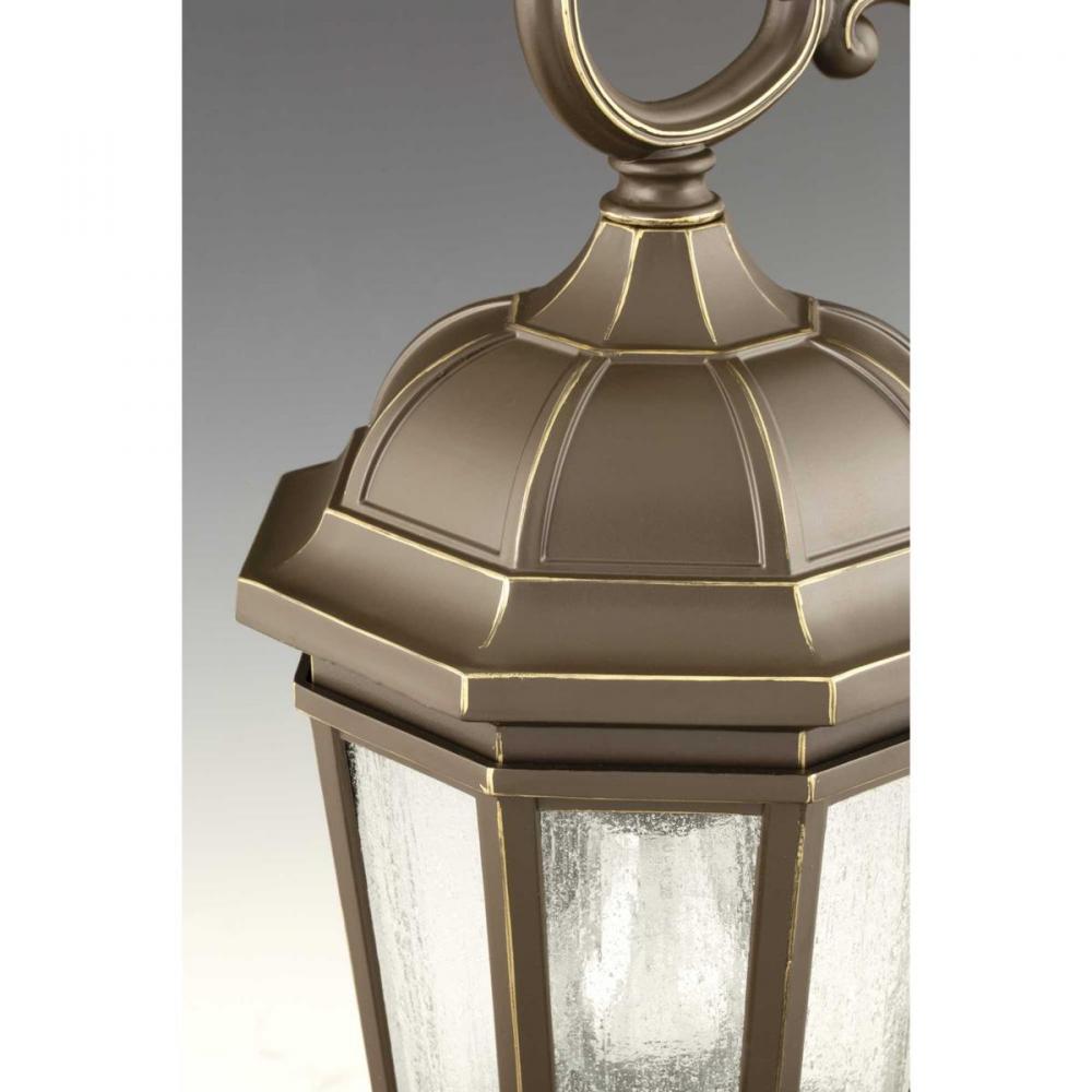 Antique Bronze finish.;Traditional style.;Classic and formal clear seeded glass.;Open bottom design for easy relamping.