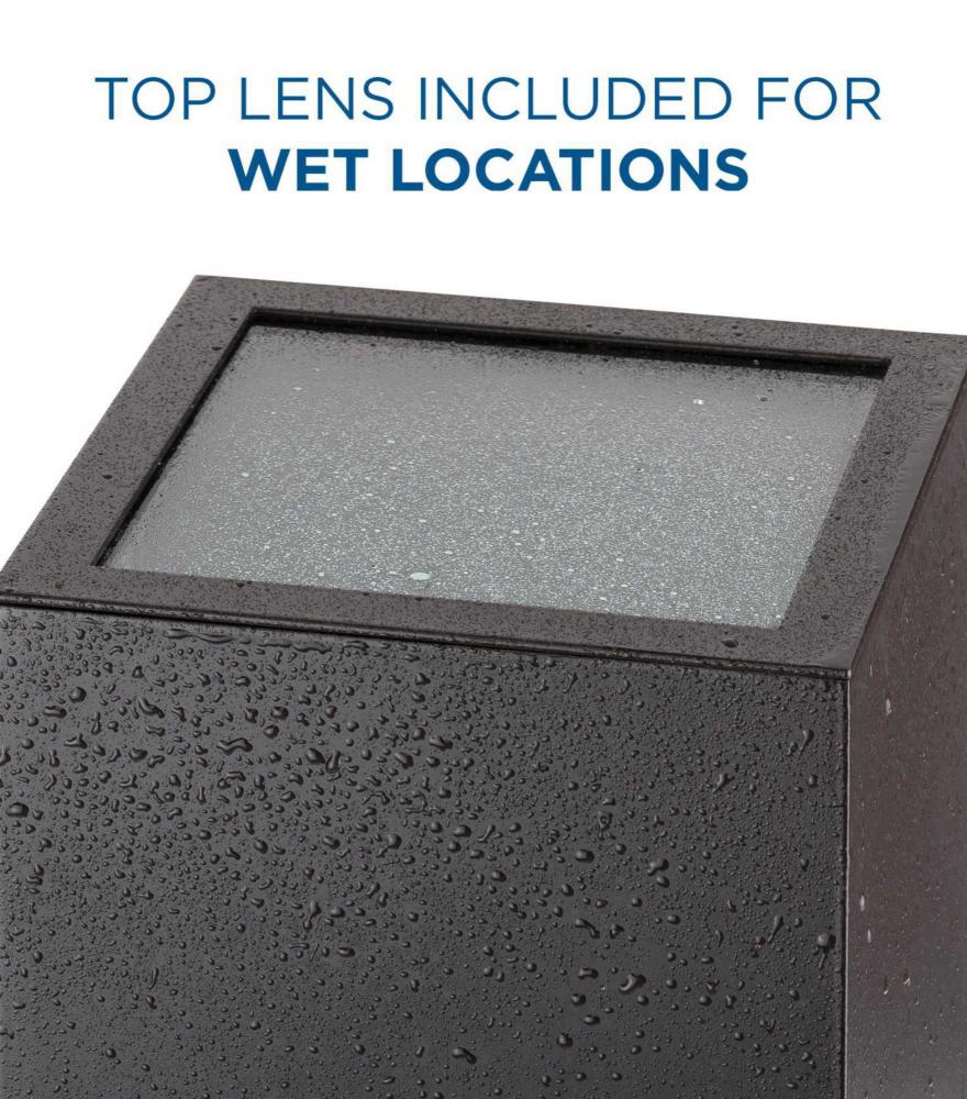 This stylish, sleek 6 in. square cylinder provides an elegant and versatile solution for your outdoor lighting needs. A wet-location rated lens is included, making the fixture ready for wet-location use right out of the box. Uses two medium base bulbs (sold separately). The light sources direct light up and down and offer beautiful, glare-free illumination.