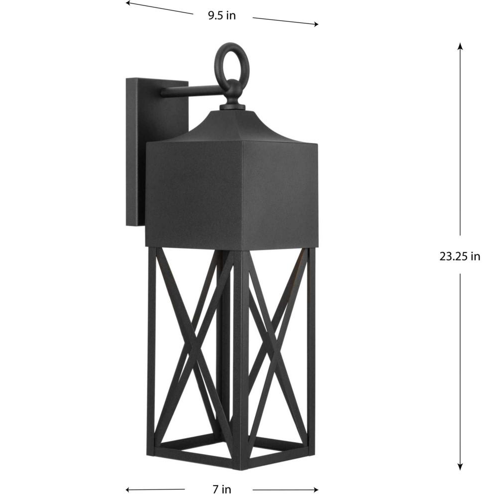 Birkdale lanterns feature large scale open geometric cages paired with a stately roof. Perfect for a modern farmhouse, rustic or traditional styles offering beautiful curb appeal. Beautiful textured black finish on a die-cast frame. The lantern's full cutoff design adheres to Dark Sky principles by minimizing glare and light trespass to protect the night sky while still providing generous illumination. Ideal for outdoor applications to include porches, patios, decks and entryways.