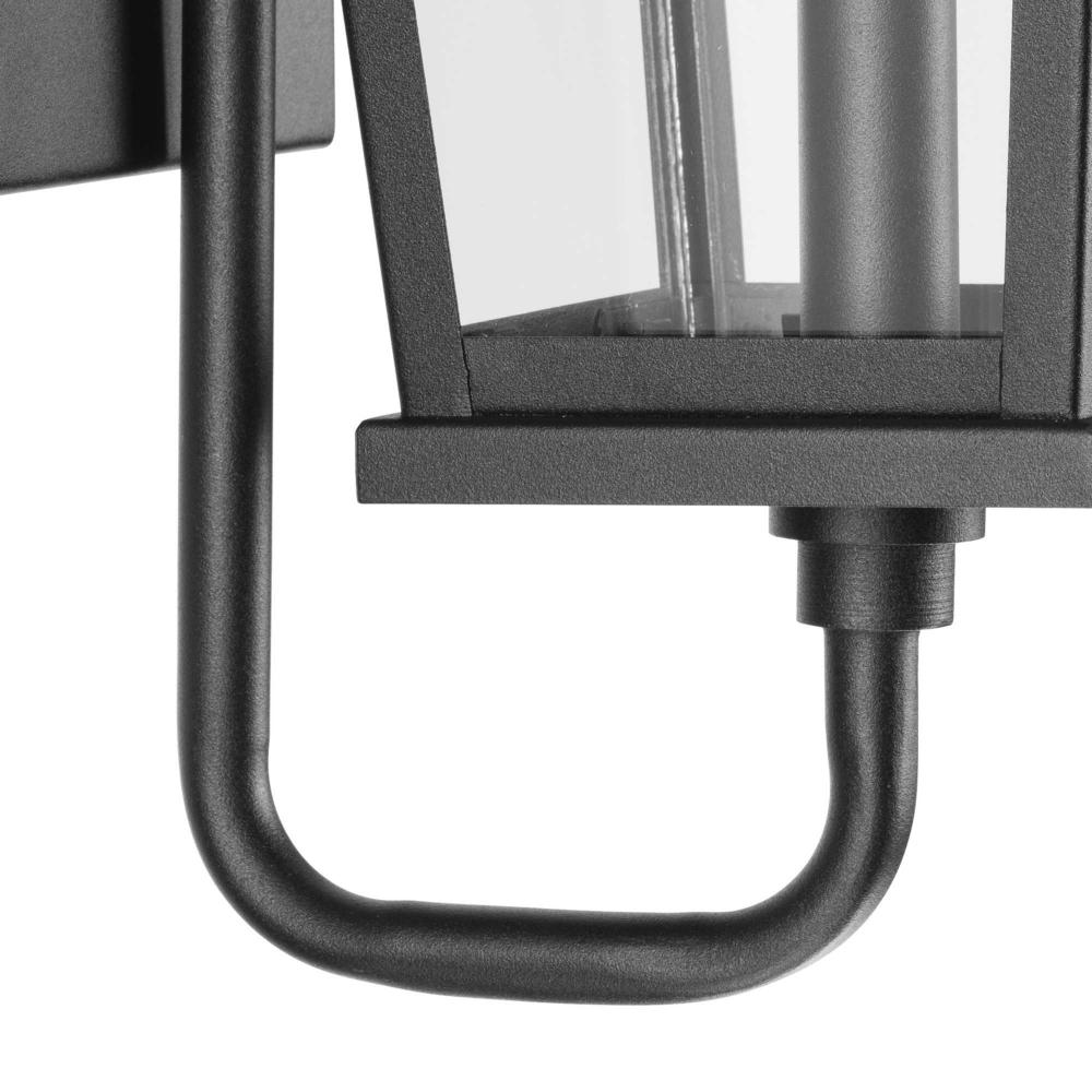 Inspired by vintage glass lanterns, the Richmond Hill Collection has a slender, tall profile and crisp angular details coated in a classic textured black finish. A stately candle enclosed within clear glass panes highlight's the elongated, tapered design while delivering crisp illumination. The updated traditional design of thiswall lantern offers fresh style to the outdoor patios, porches and other outdoor or indoor settings of modern farmhouse and transitional homes. It is cULus wet location listed for use where water may be present, with a one-year warranty to guarantee your complete satisfaction. Progress Lighting products are designed for exceptional quality, reliability, and functionality.