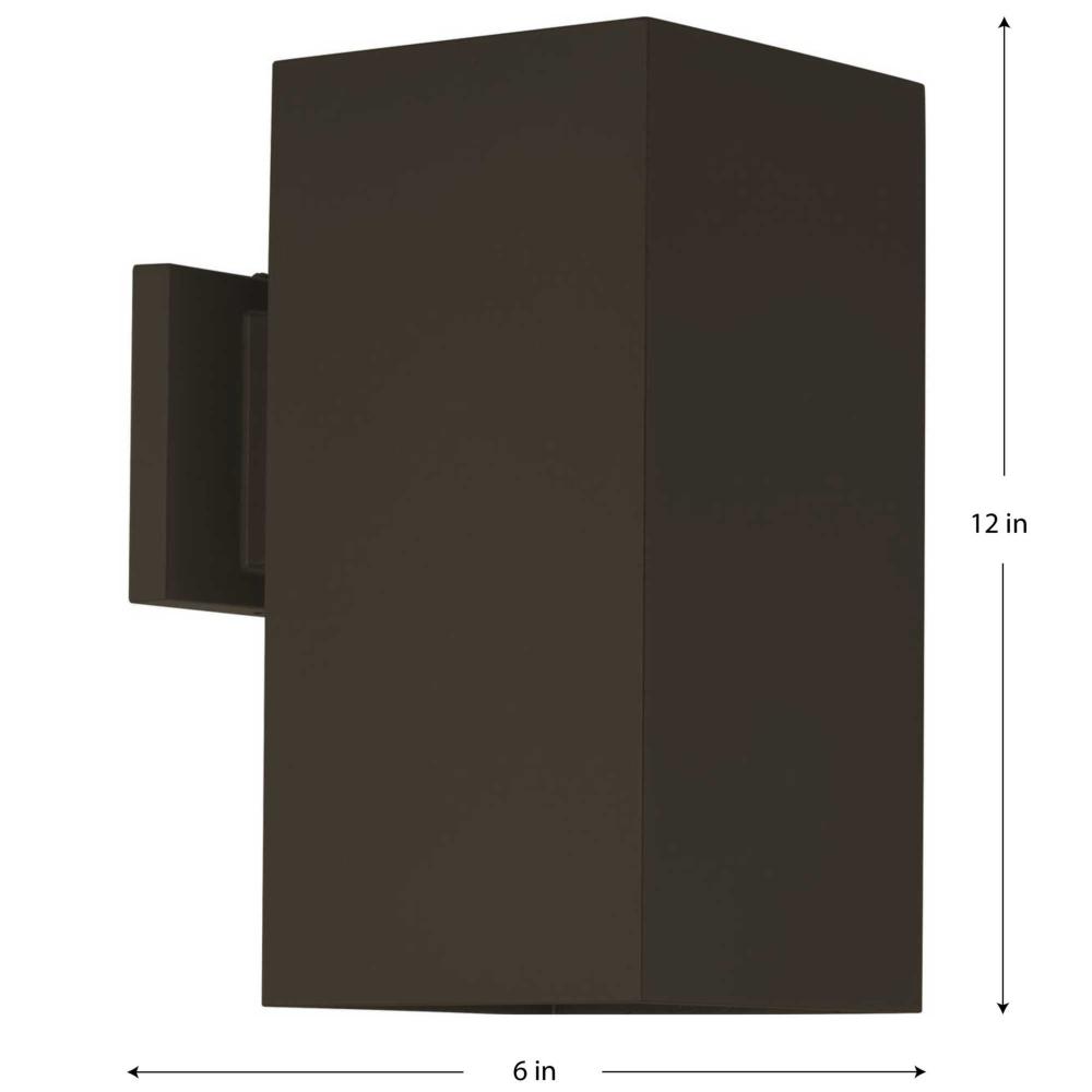 6" LED Square Cylinder with heavy-duty aluminum construction, die-cast aluminum wall bracket. UL listed for wet locations. Powder coat for chipping and fading resistance. Dark Sky compliant for down light only. The P5643 is ideal for indoor/outdoor applications. It can be used in residential or light commercial installations. Antique Bronze finish.