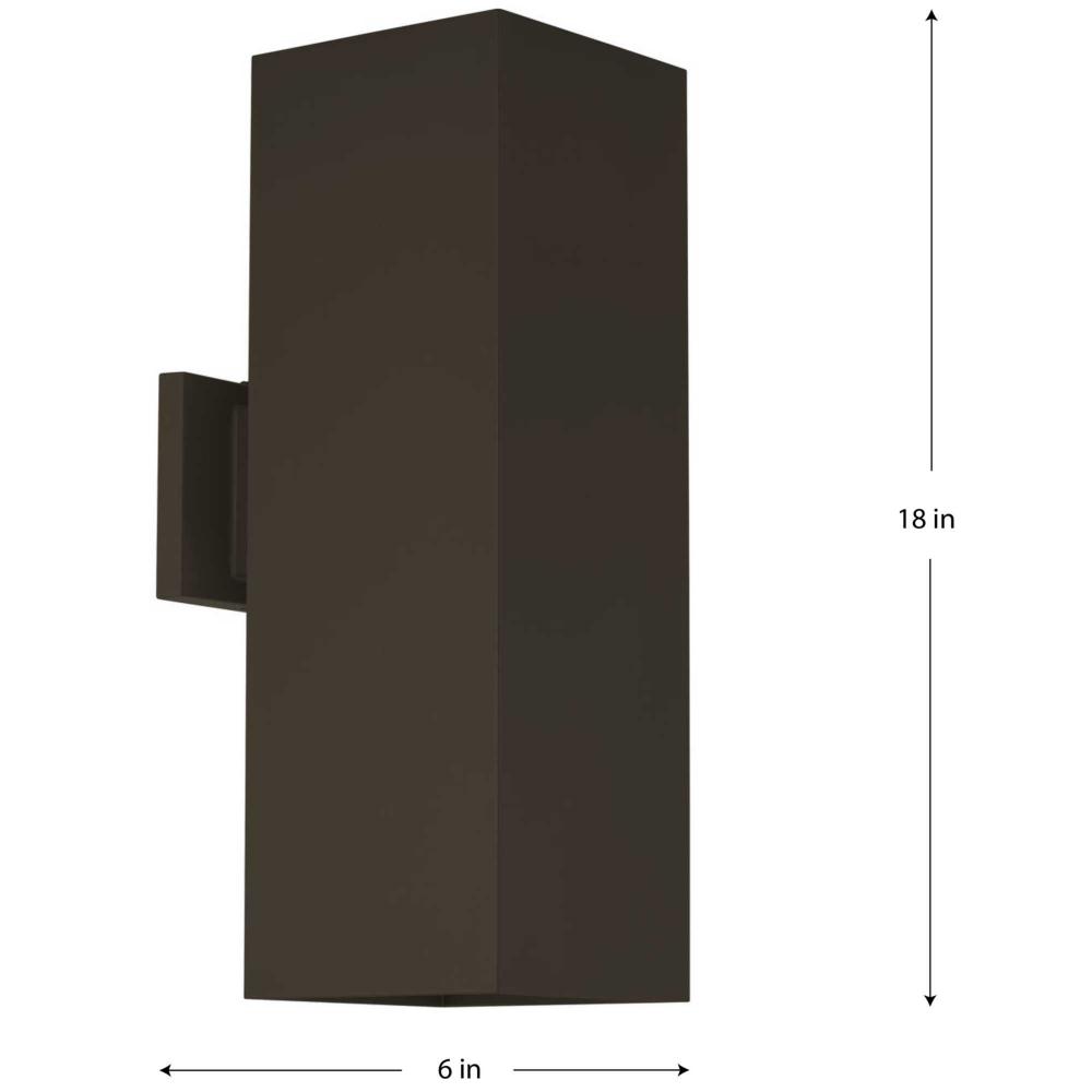 6" LED Square Cylinder with heavy-duty aluminum construction, die-cast aluminum wall bracket. UL listed for wet locations. Powder coat for chipping and fading resistance. Antique Bronze finish. Wet location listed when used with P860047 top cover lens (sold separately).