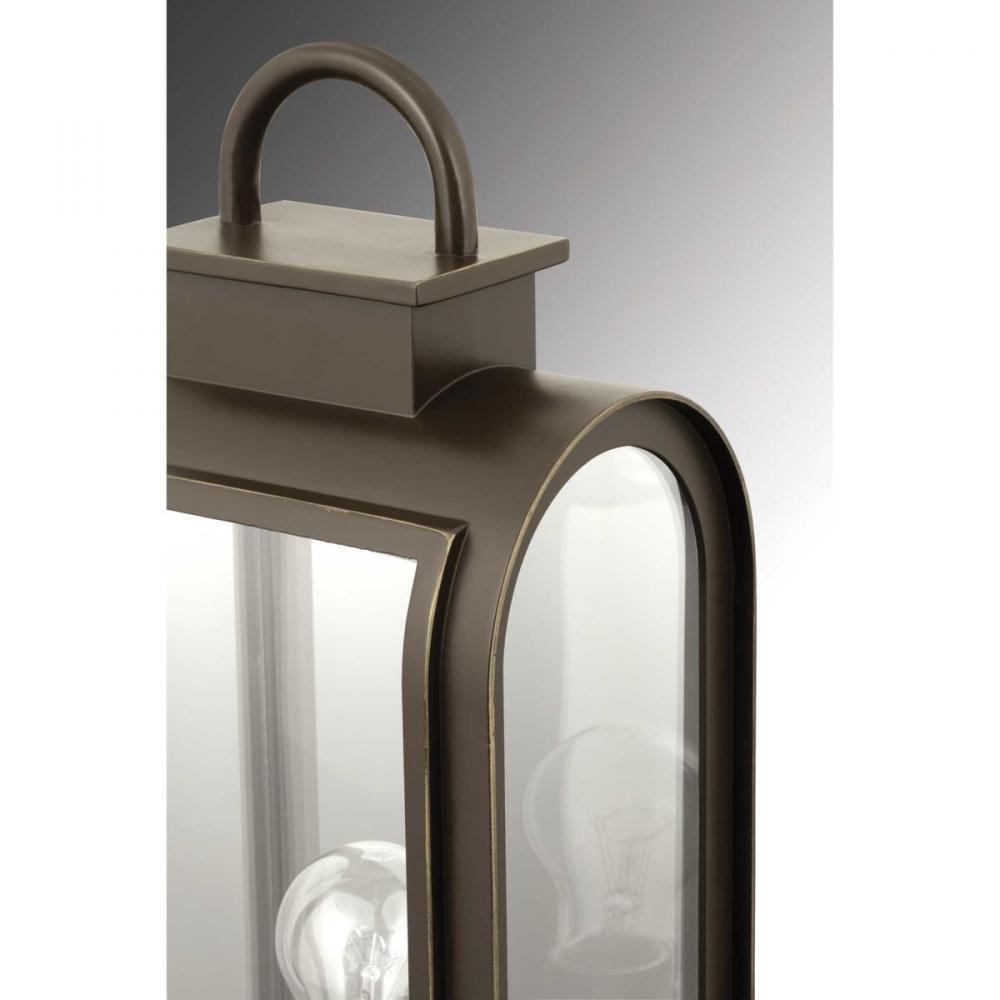 One-light small wall lantern in a Cape Cod-inspired frame pays homage to a classic nautical style. Light output and geometric forms offer visual interest to outdoor exteriors. Clear glass windows are paired with a unique umber reflector panel that provides a beautiful effect when illuminated.