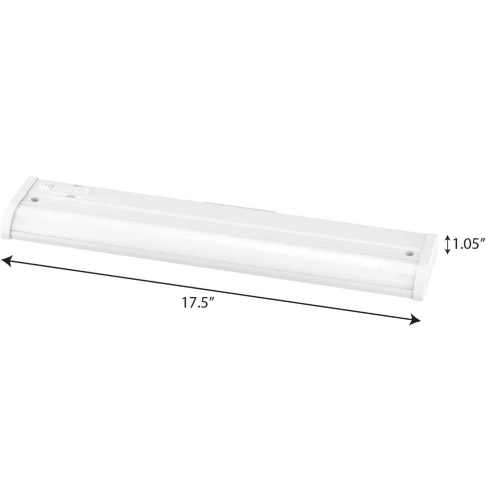 Combine elegant design with energy-efficient LED light in the Hide-A-Lite Collection 1-Light 18-Inch Satin White Modern LED Linear Undercabinet Light. The fixture's frame is coated in a crisp satin white finish. An access plate and quick connect wire connectors make installation easy. The fixture is directly wired. Two armored cable fittings are included. The 5-CCT selectable LED light engine offers flexibility in application, allowing the choice of 5 different color temperatures allowing for the best lighting color to fulfill the design intent. An on-off switch on the front allows for easy task light illumination.