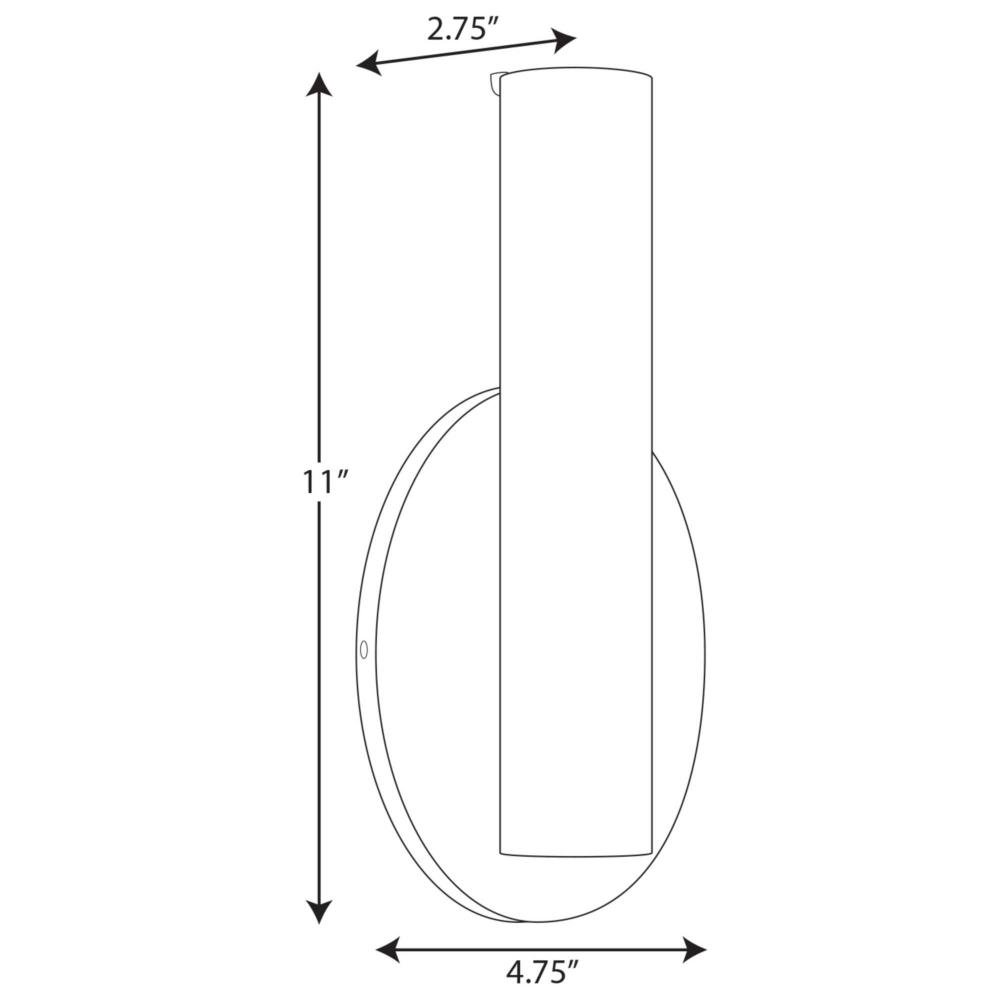 A cylindrical design pairs with an oval back plate to create a harmonious design;11" linear 16-watt LED wall bracket;Etched white glass;Brushed Nickel finish;Integrated LED source provides a variety of energy and cost savings benefits for the homeowner