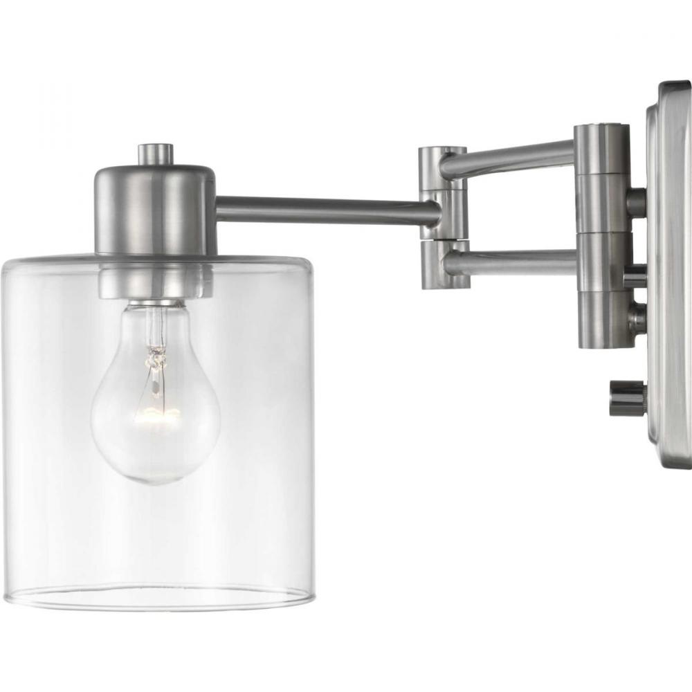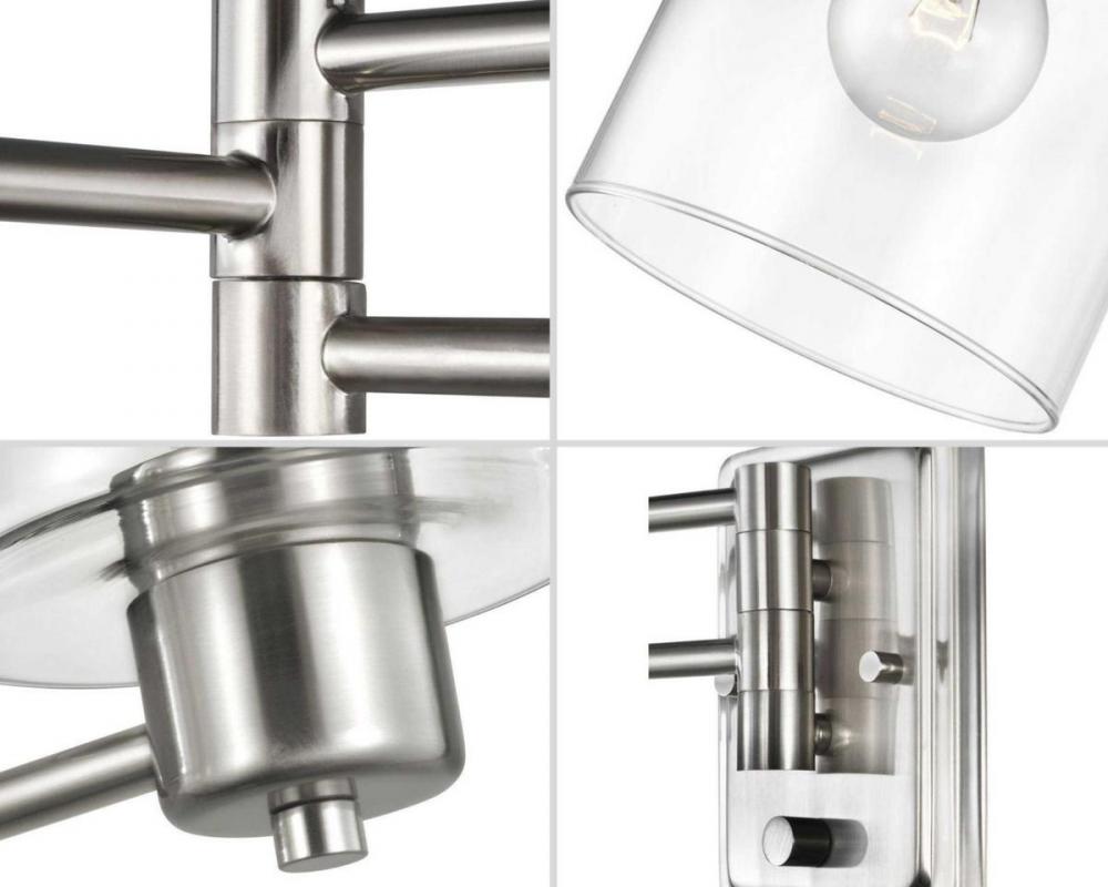Experience The Comforting Familiarity Of The Classic Components Of This Wall Bracket. Snuggle Up In Bed With A Good Book And Warm Cup Of Tea As The Light Fixture'S Brushed Nickel Swing Arm Provides You With The Lighting Flexibility You Need To Fit Your Lifestyle. A Crisp, Clear Glass Shade Contrasts With The Industrial Backplate.