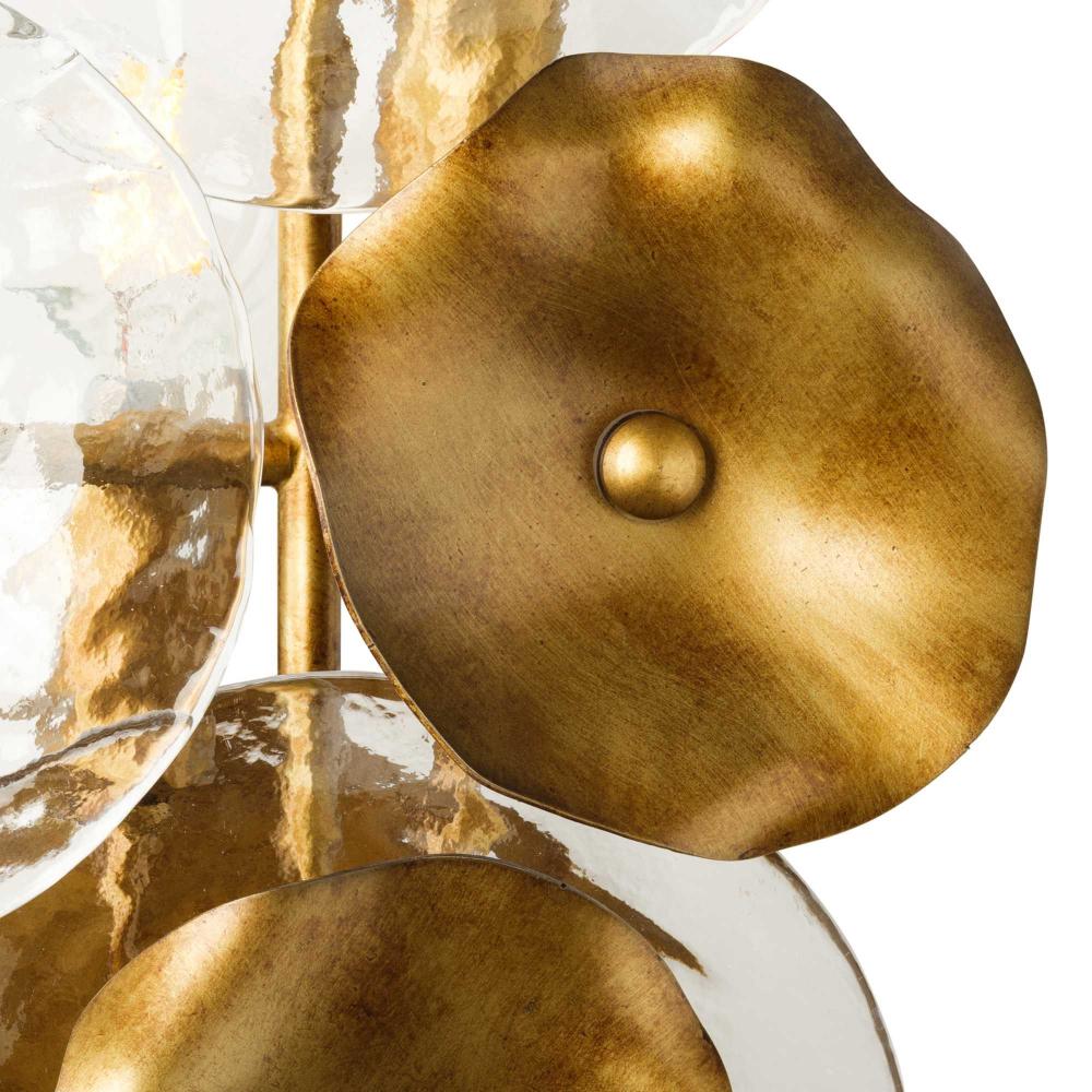 The Loretta Collection captures the serene feel of lily pads floating in a gently rippling pond. Glimmering artisanal clear glass is paired with handcrafted metal leaves finished in a soft, Gold Ombre patina.Light sources deliver an ambient glow behind the luxe glass and metallic discs that festoon its graceful frame. This fixture is part of the Progress Lighting Design Series, a lighting collection offering fashionable styles and affordable luxury lighting for the home.