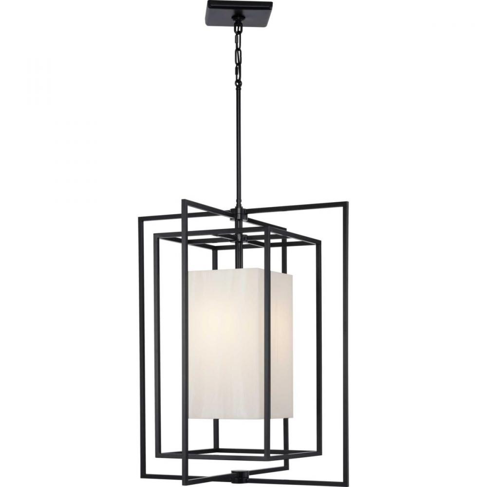 The Shadmore Pendant embraces bold architectural influences to create a minimalistic design that effectively blurs the lines between indoor and outdoor living. Airy interconnected geometric cubes form a spacious frame giving the light a modern personality. An elegant, marbleized acrylic shade creates a striking focal point while delivering an inviting, warm glow. This pendant is part of the Jeffrey Alan Marks Point Dume lighting collection which celebrates a curated mix of yesterday and today, distilling both industrial and artisanal influences.
