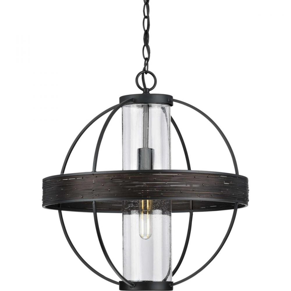 Furnish an elegant rustic focal point with the Terrace Collection. The pendant's slender frame creates a captivating circular silhouette. Generous illumination is cast from a central seeded glass shade to highlight the bronze woven accent band. Will complement a variety of indoor and outdoor living spaces.