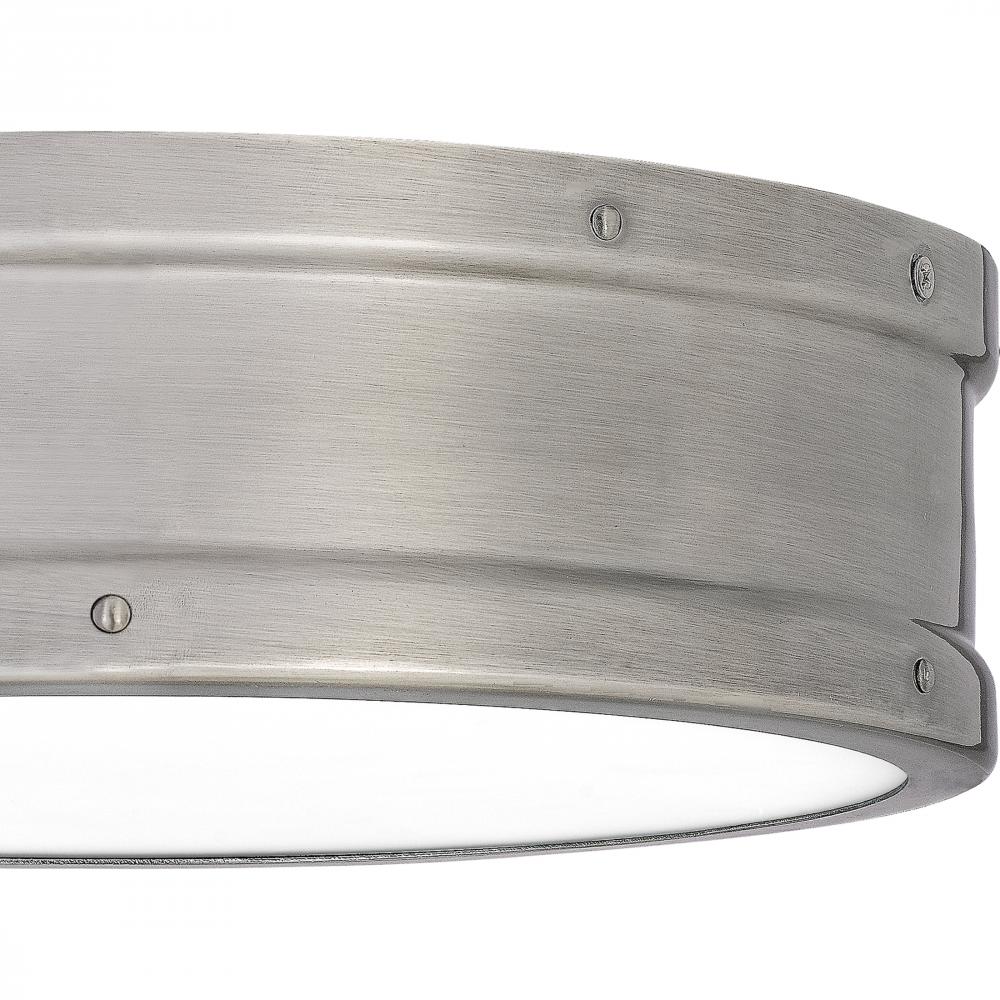 The Ahoy flush mount takes a modern approach to industrial design. Available in three beautiful finishes, the classic drum silhouette is accented with small knob details for an extra layer of style. An integrated LED light source is included, emitting the