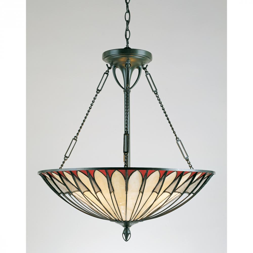 The softly arched wire arms of the Alahambre Collection are suspended over cream colored opalescent glass with wine accents gives this cone shaped shade the illusion of being dome shaped. Clear granite textured glass connects all the elements giving a mu
