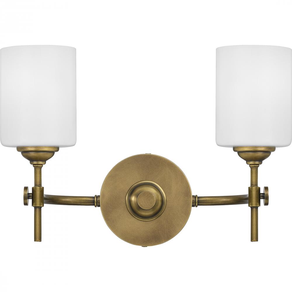 Upgrade any bathroom vanity with the addition of the Aria bath light. This sleek and striking light is available in multiple sizes and can be installed with shades facing up or down for added versatility. The weathered brass finish embodies a warm and slig