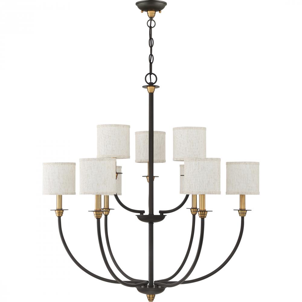 Delicate linen shades add a touch of chic sophistication to the Audleys traditional design. A classic silhouette in oil-rubbed bronze is updated with lustrous gold accents, offering versatility in both style and setting.