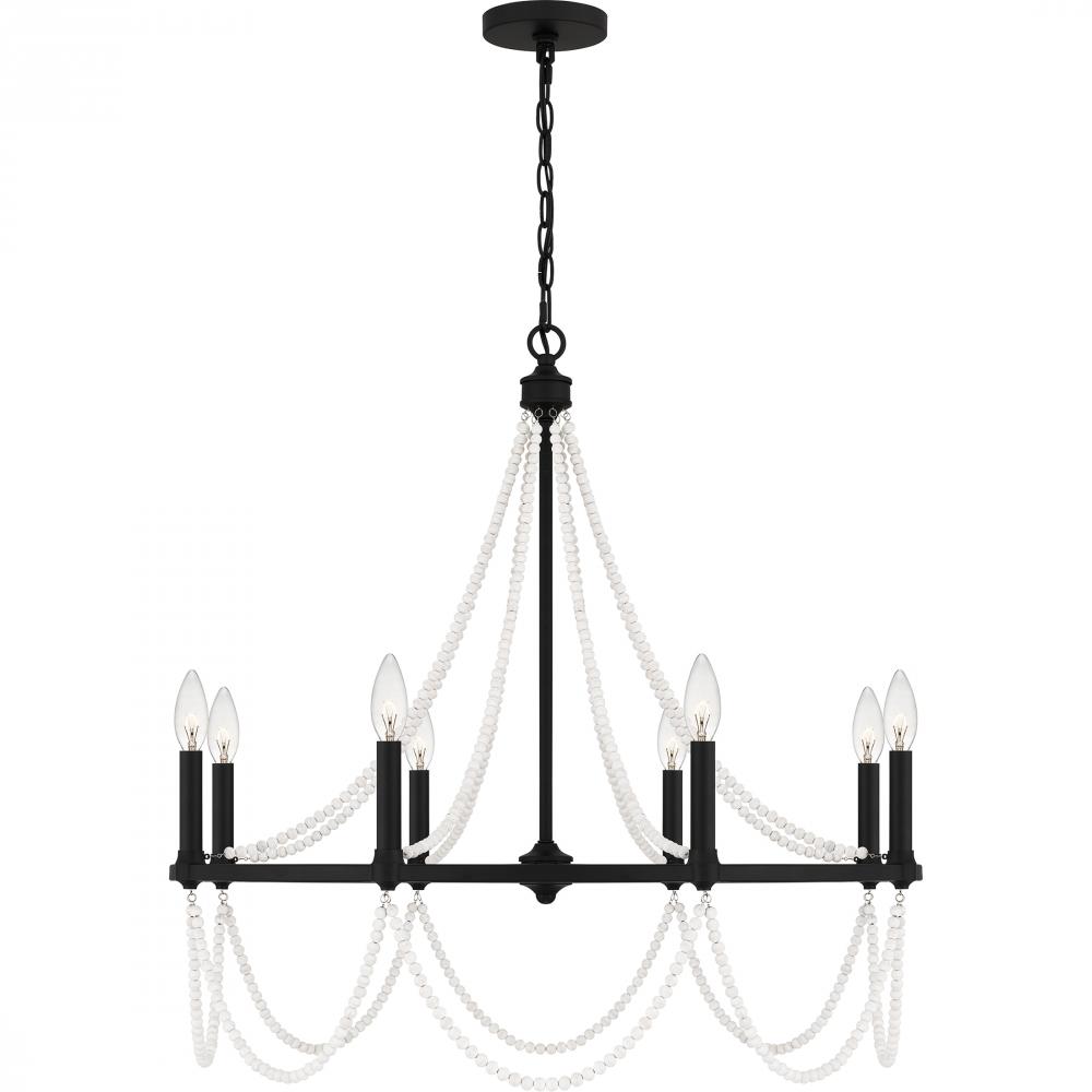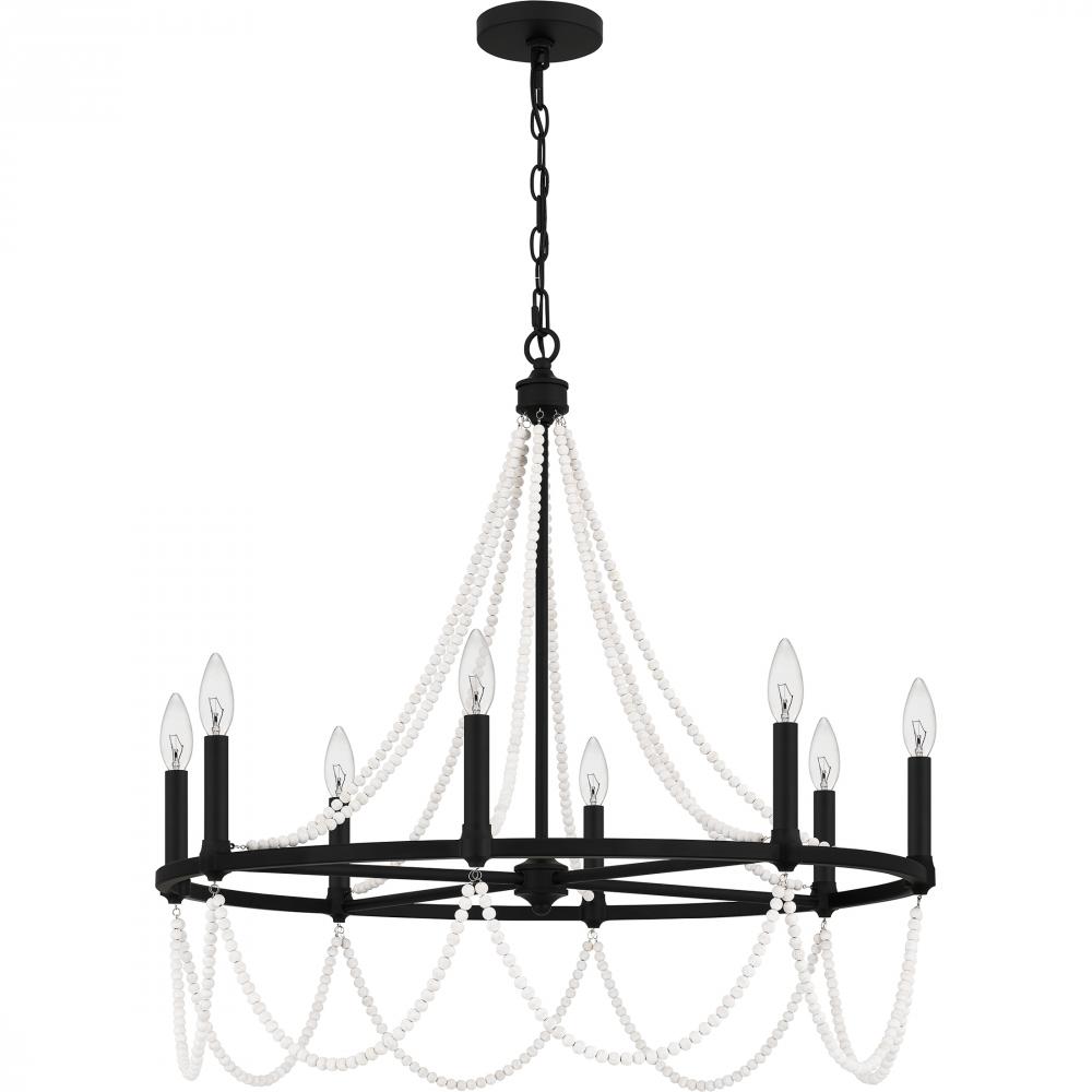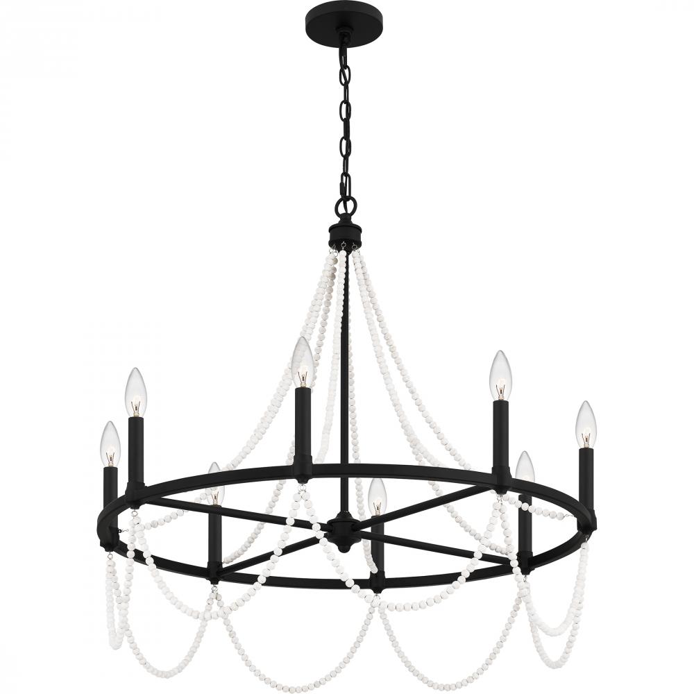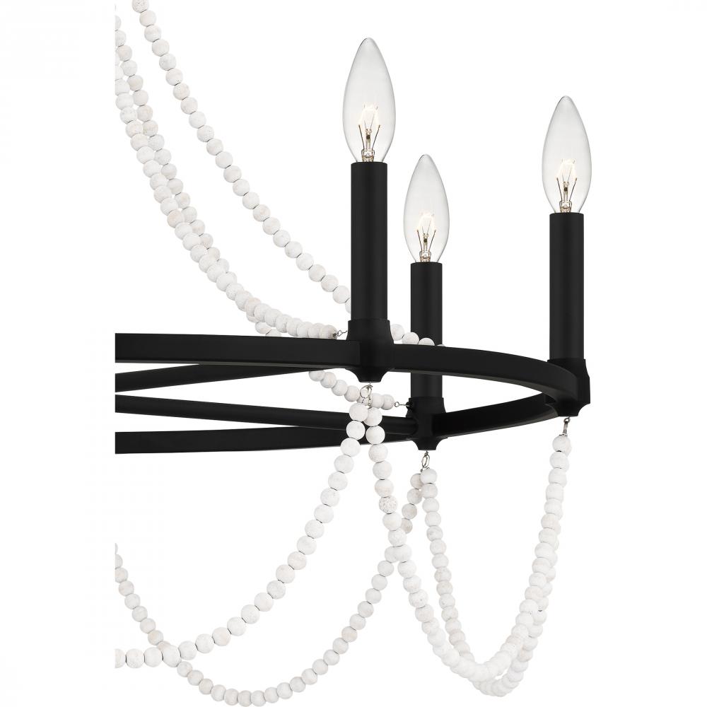 Part of the Quoizel Naturals series, the Brigitta chandelier exemplifies modern bohemian style with draped wooden beadwork throughout. The finish is up to you: keep it light and airy with a brushed nickel finish, or create a moodier vibe in matte black. Tw