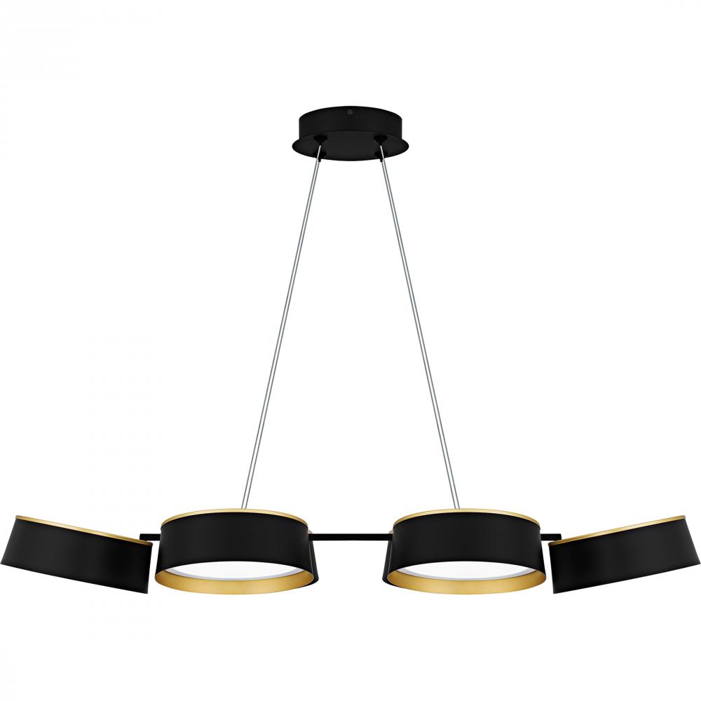 Elevate your space with Byrnes, where modern design meets luxury. The striking combination of matte black and gold creates a sophisticated look in this unique fixture. Featuring a cluster of round metal shades, each equipped with an integrated LED light so