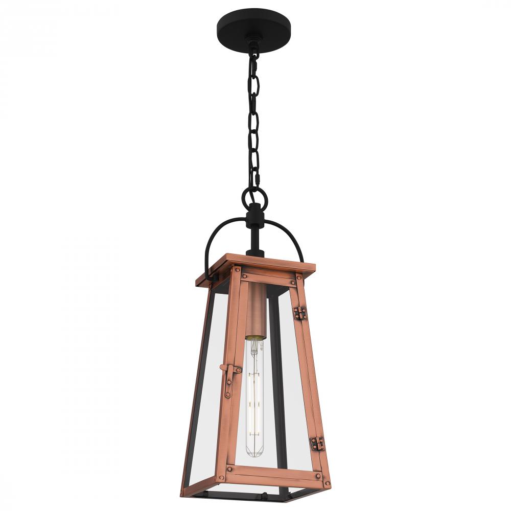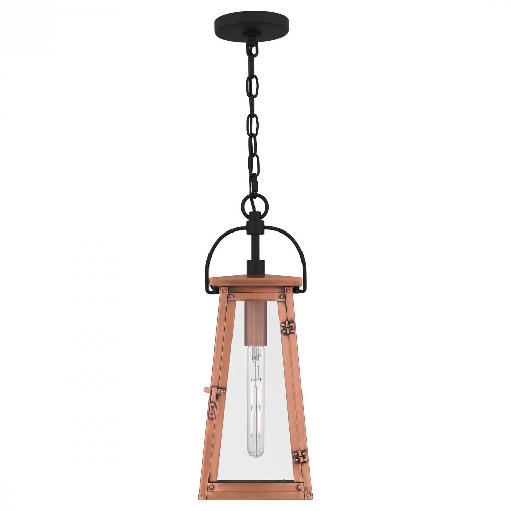 Drawing style inspiration from historical gas lanterns, the Carolina mini pendant light adds romantic charm to any homes interior. The traditional silhouette features an aged copper finish, embellished with hand riveted accents and clear glass panels to ma
