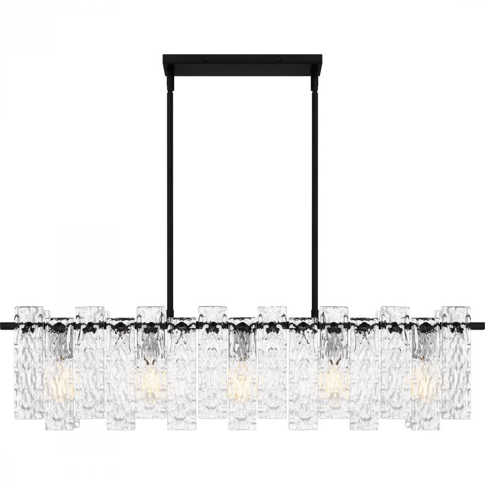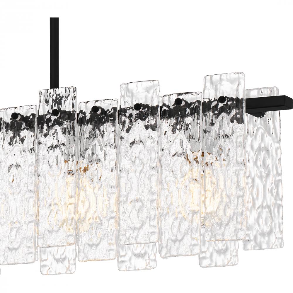 Clear textured glass creates a sense of movement in the Caspian collection. Available as a semi-flush mount or island light, this piece features a matte black finish and integrated LED technology for low maintenance and energy saving lighting. As part of t