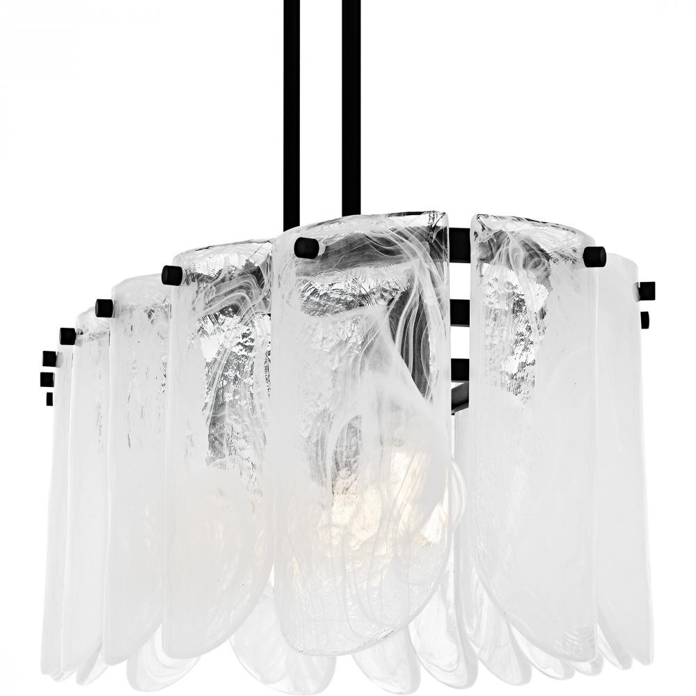 Add a touch of dramatic flair to your home with the Cassidy lighting collection. Featuring exquisite white swirl glass, these fixtures offer a stunning visual appeal that enhances any space. The sleek matte black finish perfectly complements the transition