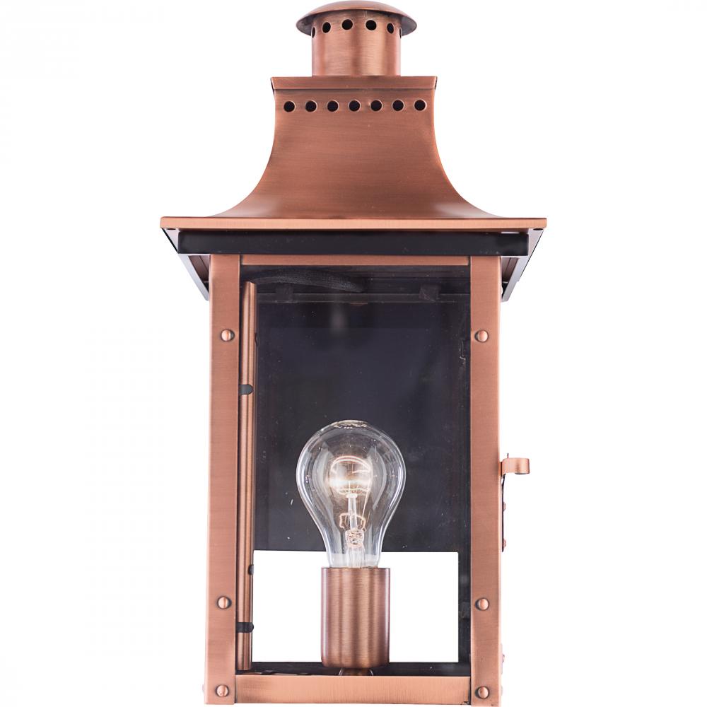 From the Charleston Copper Lantern Collection this piece gives you the historic look of gas lighting but without the hassle of a propane feed. It is all electric solid copper and hand riveted giving your home the romantic reproduction style of antiqu