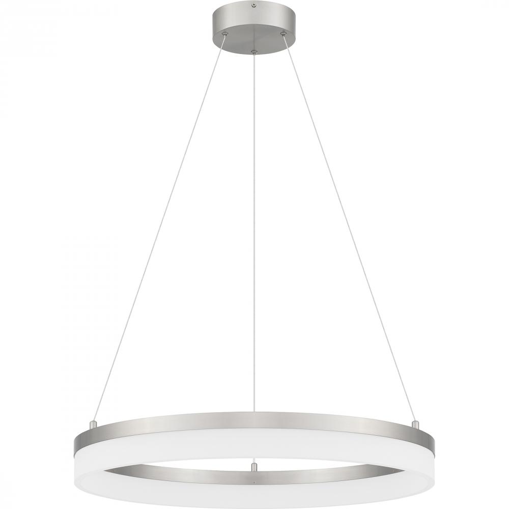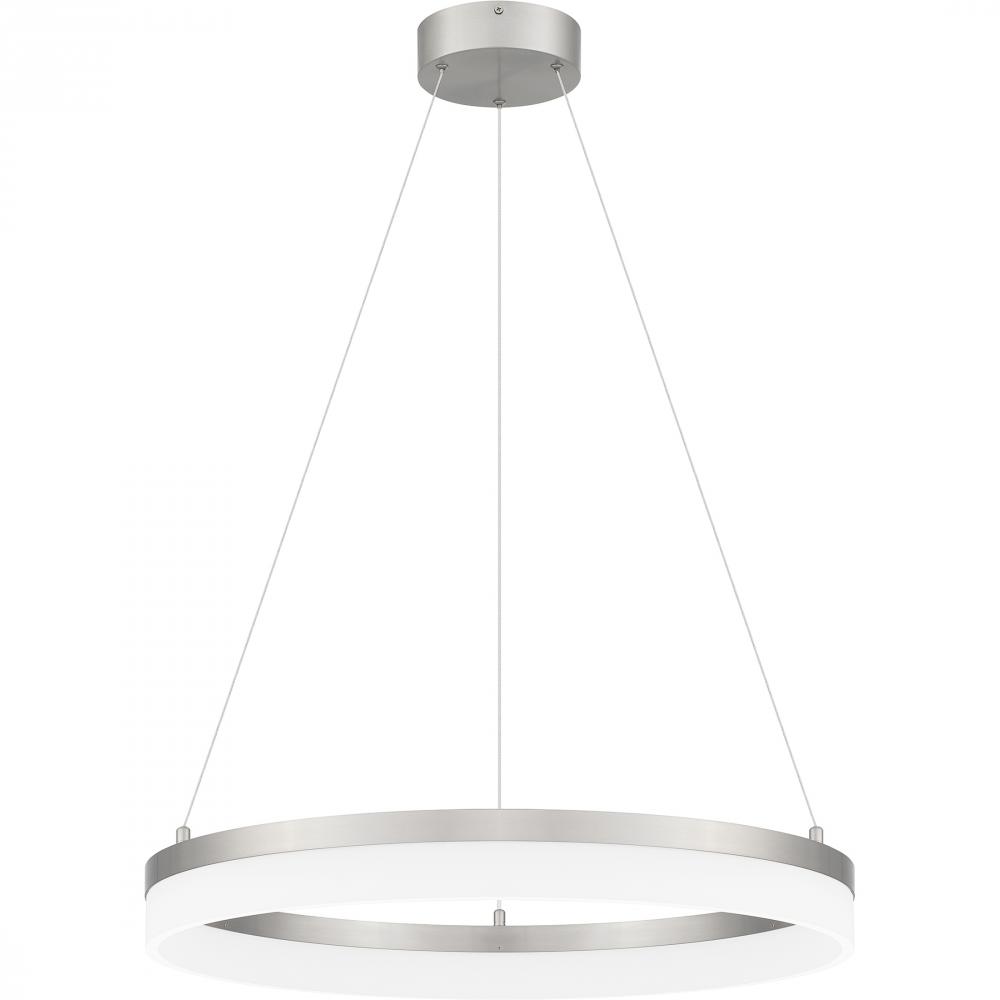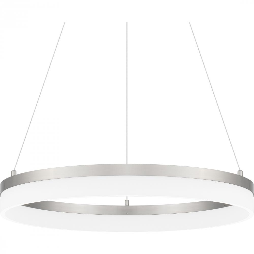Sleek and striking, the minimalist Cohen series hypnotizes with a halo-like ring of glowing LED light. Choose from a variety of style options from flush mount to chandelier, all featuring an etched acrylic shade and your choice of either brushed nickel or