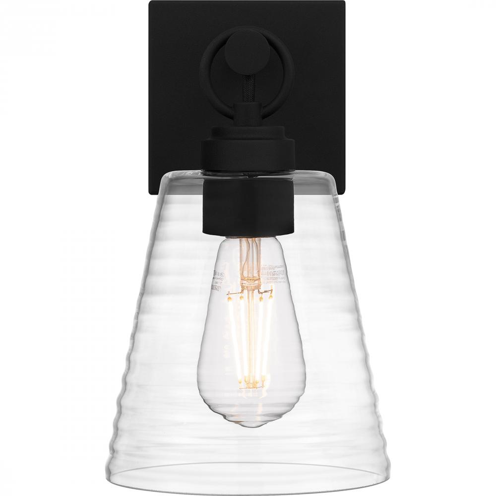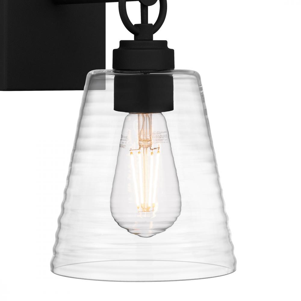 Clear swirl glass shades add major visual intrigue in the Dacosta wall sconce and bath light collection. A delicate hook accent connects the glass shades to the minimalist backplate, offering subtle farmhouse style. Finished in earth black, Dacosta makes a