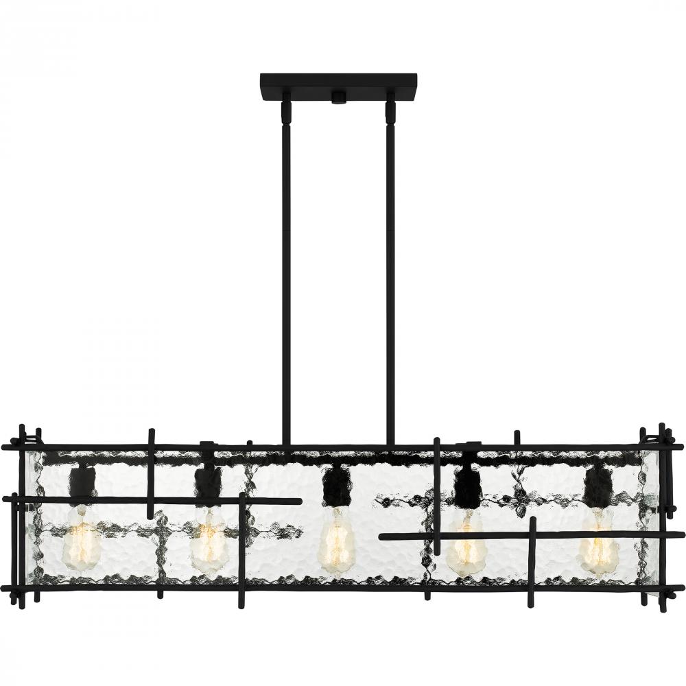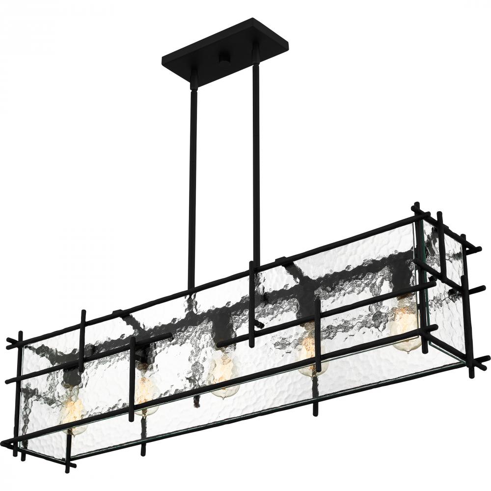 Daphnes transitional design adds subtle style to any space. The open rectangular silhouette features staggering matte black lines and clear ice glass for a beautiful contrast. Available as an island light, pendant, or semi-flush mount, Daphne makes a state