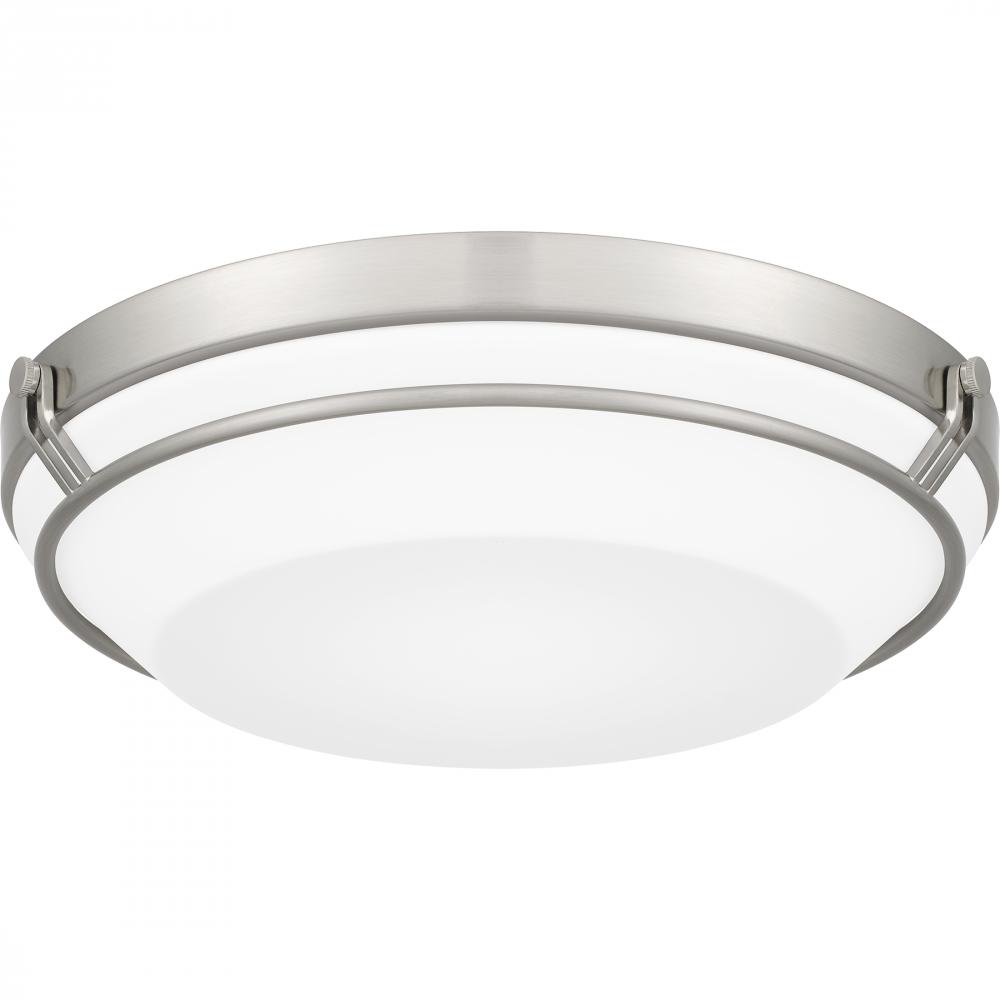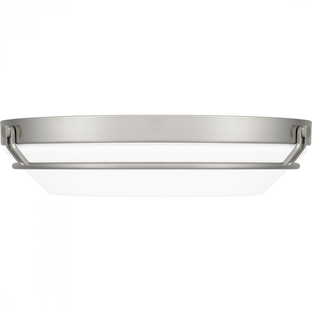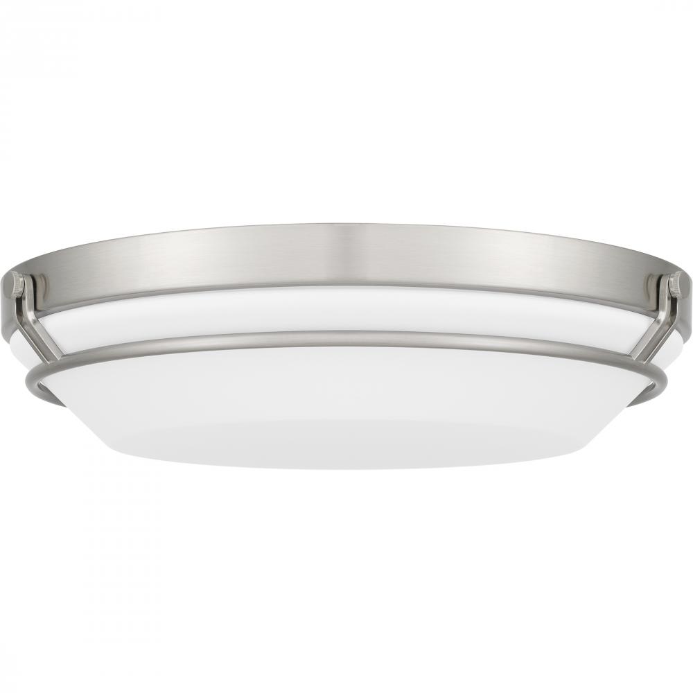 Simple and striking, the Dunbar flush mount offers a contemporary lighting solution in a variety of interior settings. The white acrylic shade is accentuated by clean metal lines, in either brushed nickel or matte black. An integrated LED light source is i