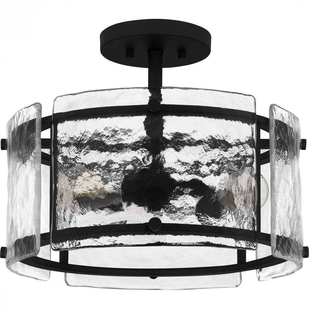 Panels of textured glass pair with an earth black finish to create the Fortress series. Offering simple yet striking design, Fortress is available as a mini pendant, semi-flush mount, pendant, or island light. As a fan light, this design comes in both eart