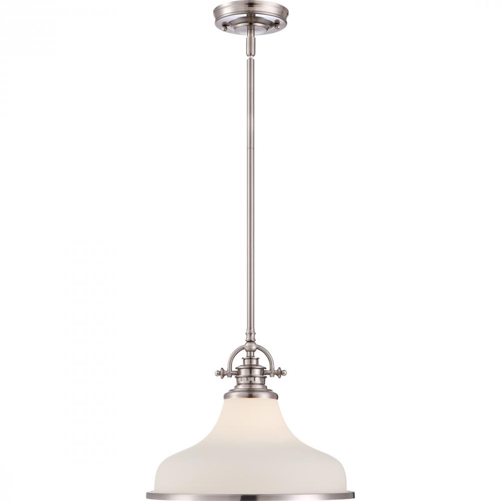 This opal etched glass fixture is an elegant nod to the past. The classic Americana styling adds a nostalgic flair to your home. When hung over a kitchen island or dinette table it provides ample lighting for all your daily tasks. It is available in Bru