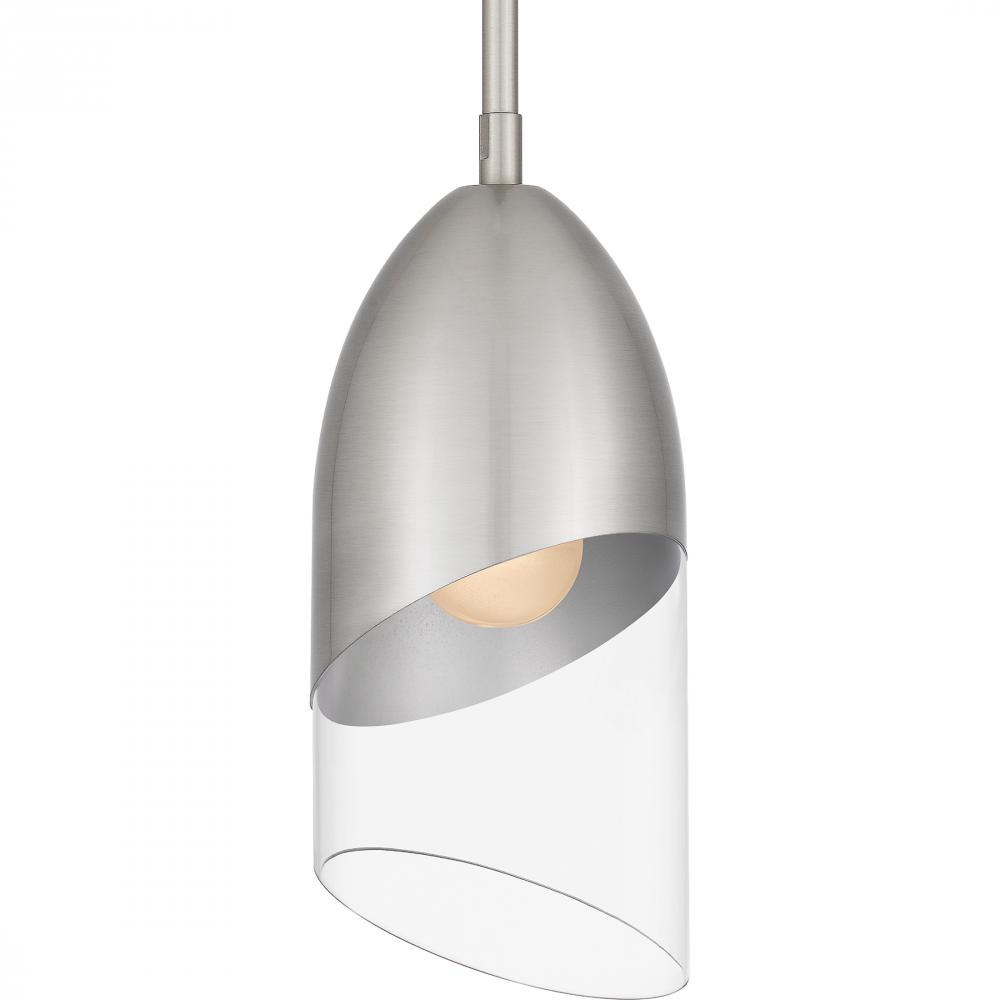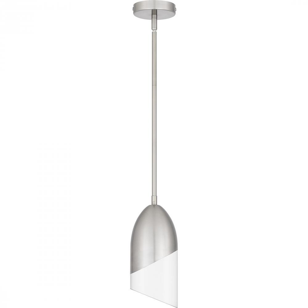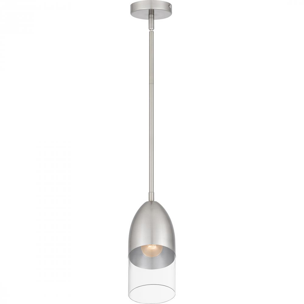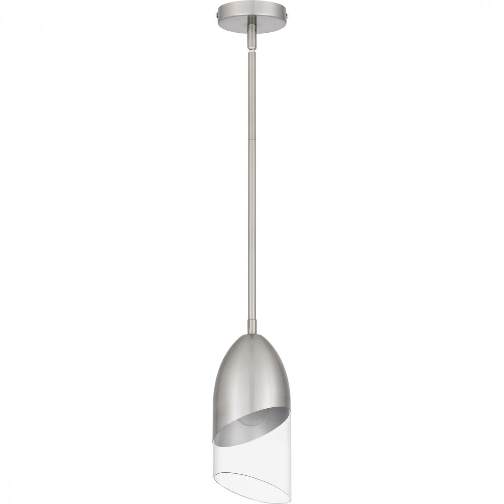 Hung alone or in pairs, Haynes mini pendant lights make a simple yet bold statement. Sharp, geometric lines in either a black chrome or brushed nickel finish offer a beautiful contrast to the clear glass shade. Part of the popular Platinum by Quoizel colle