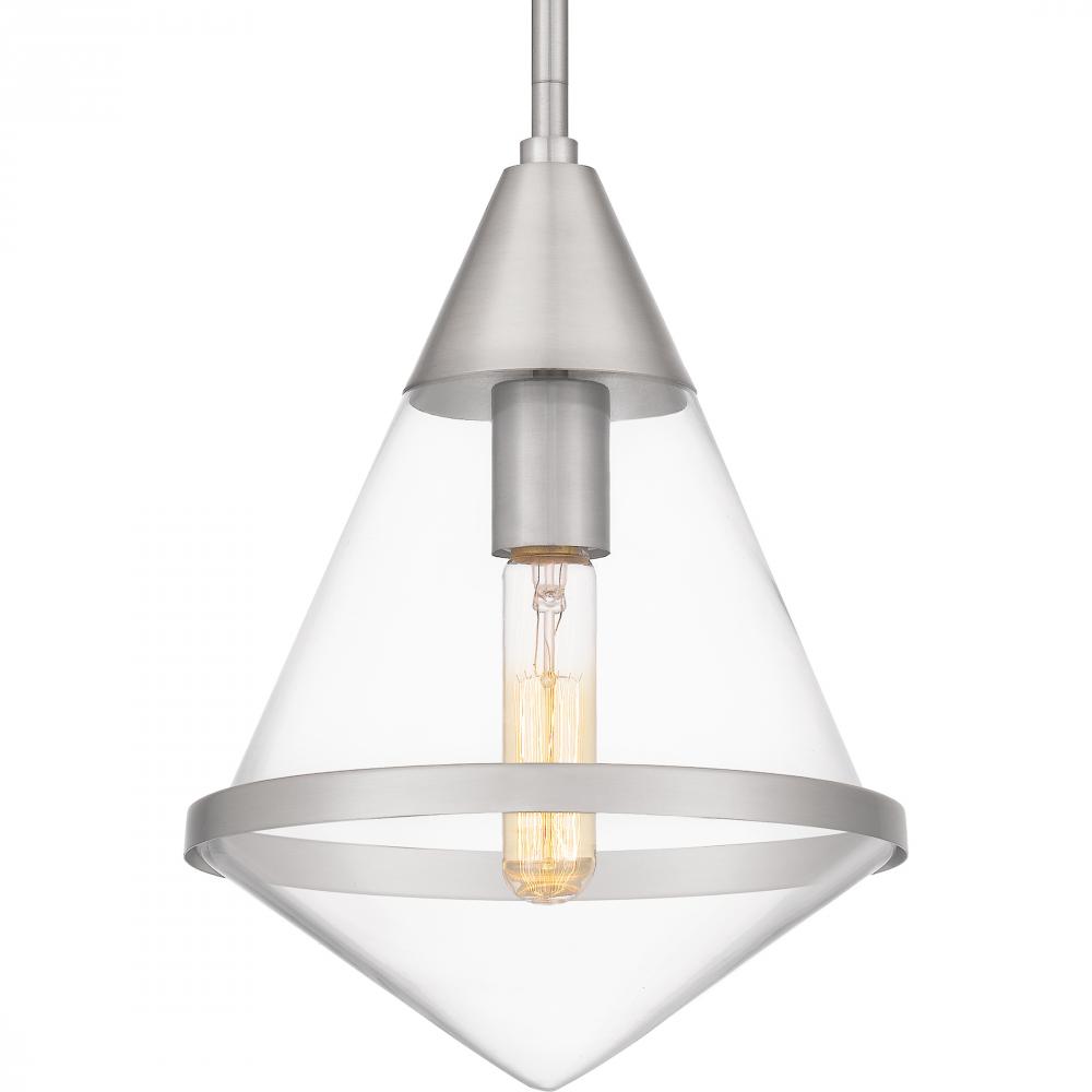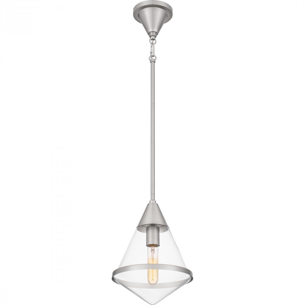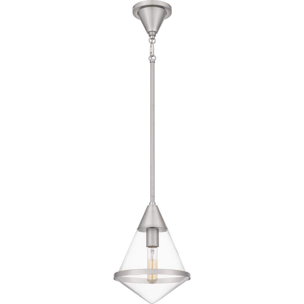 Clean lines and a bold geometric shape make Hidalgo a standout piece in any living space. Clear glass enhances the unique and transitional silhouette, finished in your choice or brushed nickel or matte black. Hang Hidalgo mini pendants alone or in a groupi