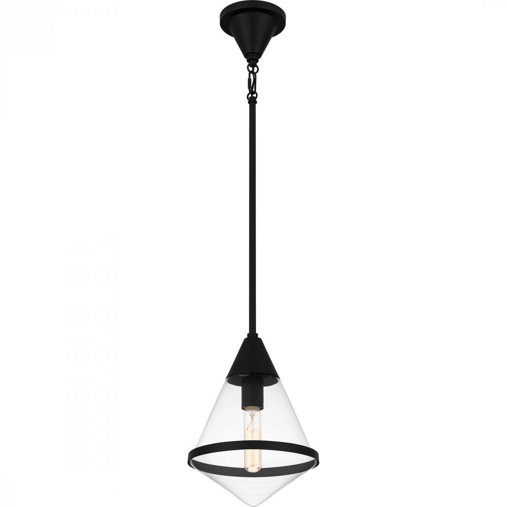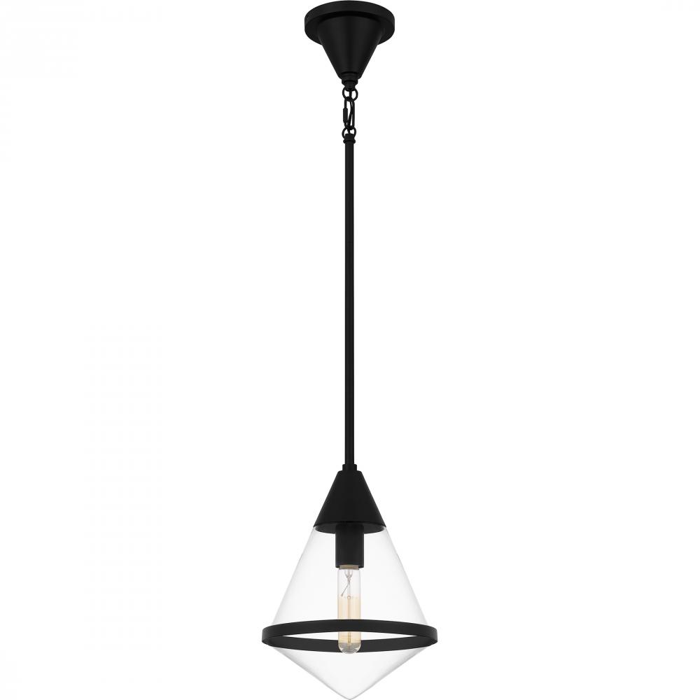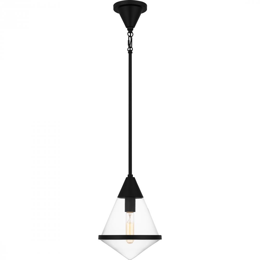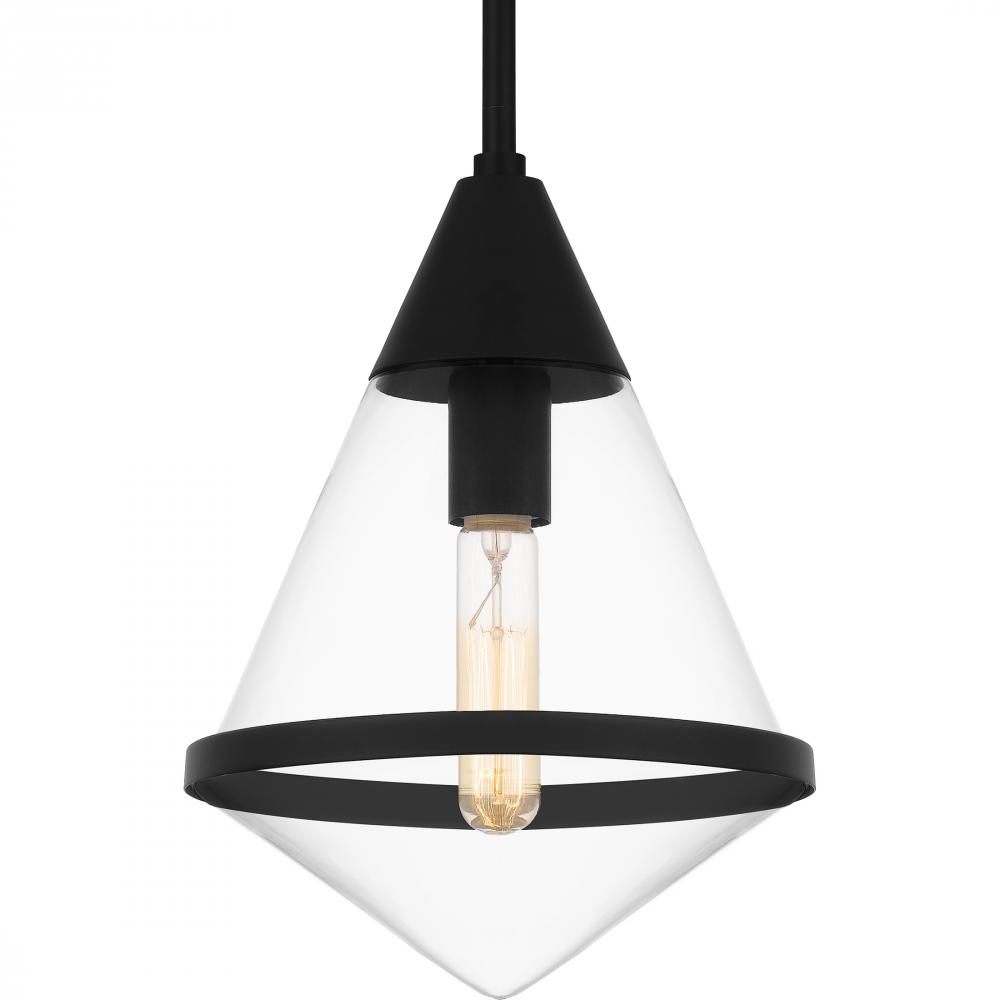 Clean lines and a bold geometric shape make Hidalgo a standout piece in any living space. Clear glass enhances the unique and transitional silhouette, finished in your choice of brushed nickel or matte black. Hang Hidalgo mini pendants alone or in a groupi