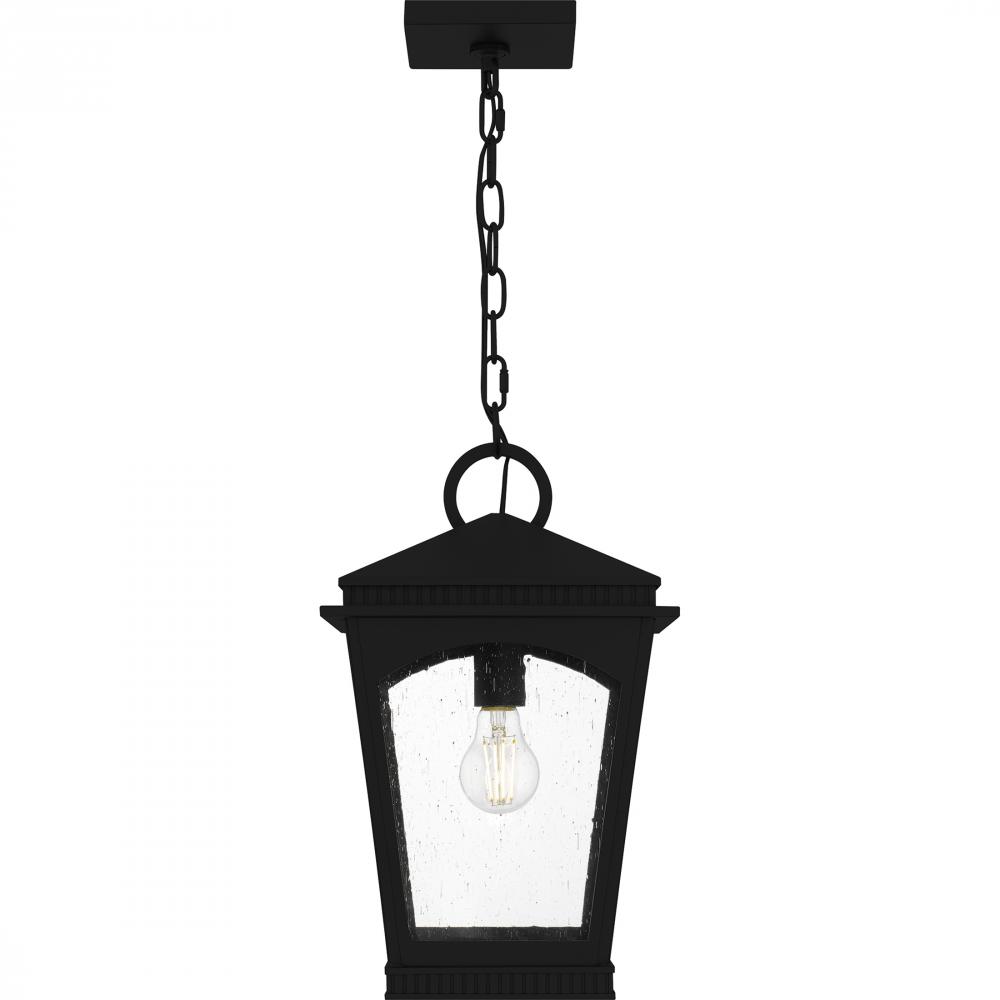 The Huck mini pendant offers a traditional design with a twist, perfect for sleek interiors. The tapered frame is finished in a sophisticated earth black finish and features unique ribbed detailing along the top that adds visual interest. Clear seedy glass