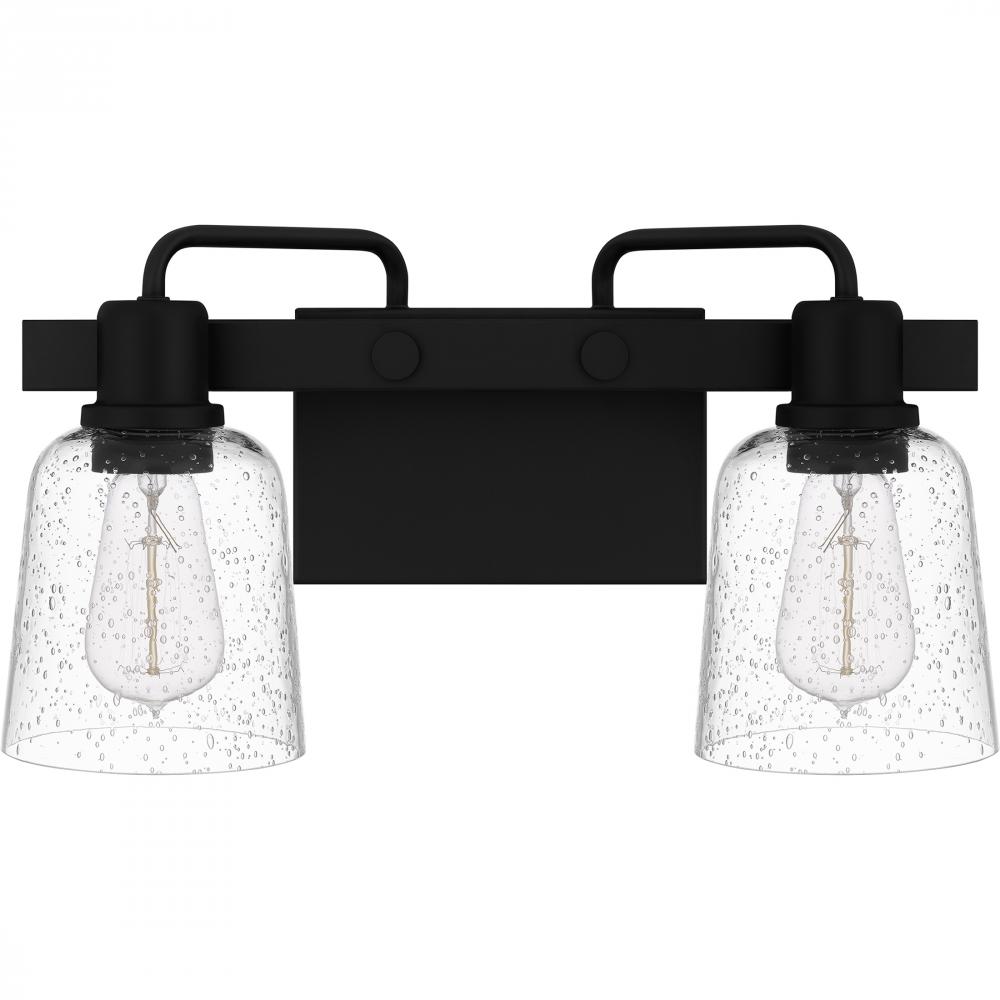 Lydia vanity lights offer a modern industrial style that complements a variety of bathroom settings. Clear seedy glass shades feature a multitude of bubbles, casting a unique and alluring glow. The classic matte black finish and clean lines of the design a