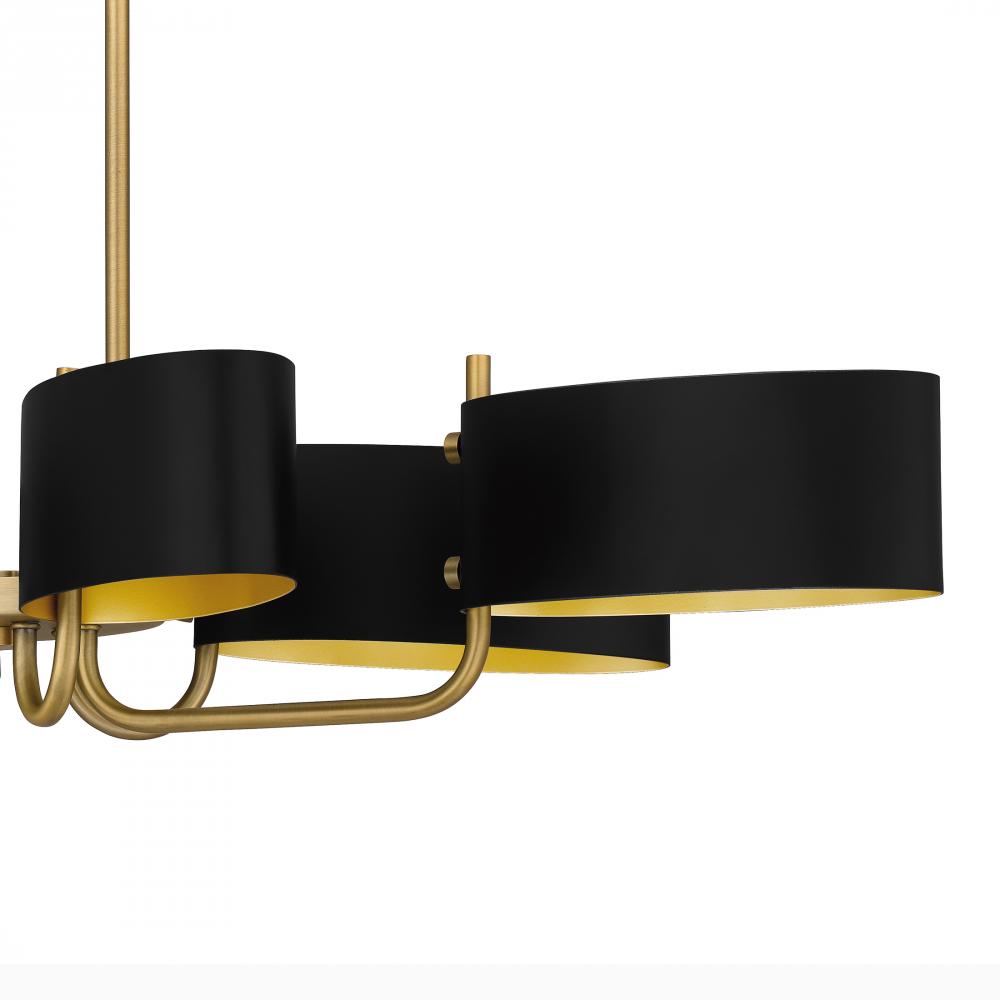 Madden is as modern as it is sculptural. The elongated black metal shades are enhanced by gold interiors and matching accents, creating a sense of contrast and warmth. With its geometric shape and aged brass finish, Madden makes a bold choice in any settin
