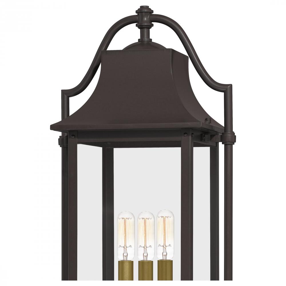 Bring a welcoming glow to your homes entrance with the Manning collection. This traditional style lantern is finished in Western Bronze and gives off an old gaslight feel. The clear glass panels allow for an unobstructed view of the lights interior which f