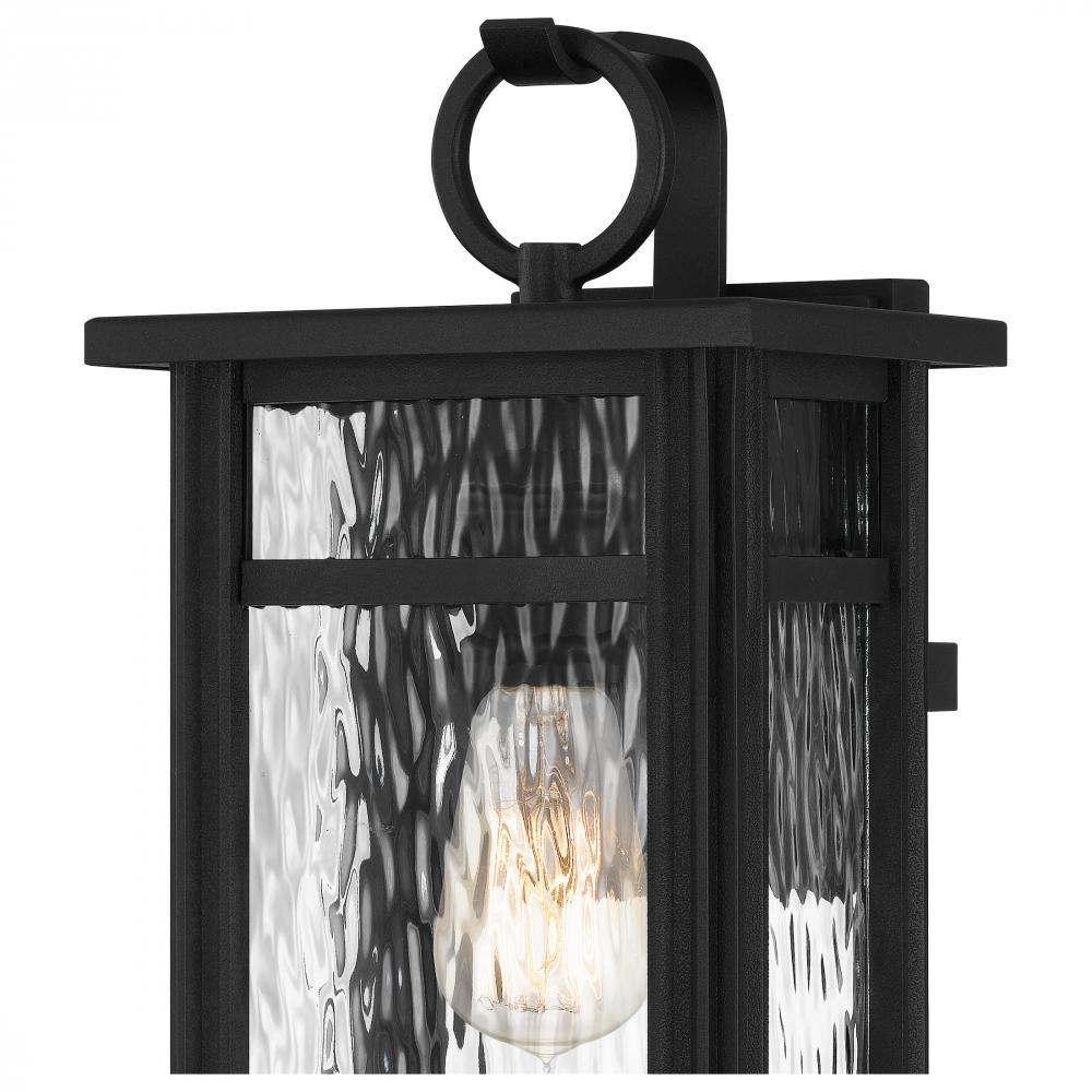 Create a strong first impression with the Moira collection of outdoor lanterns. The rectangular frame and clear water glass shades create a transitional feel that complements any modern farmhouse or coastal style home. Lanterns are finished in an Earth Bla