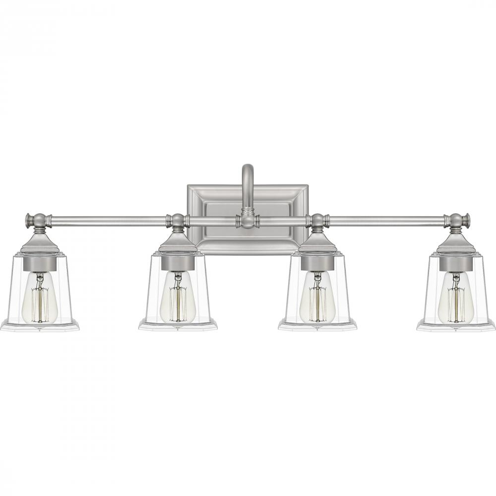 The Nicholas collection gives a solid nod to mid century style. The streamlined silhouette is finished in Brushed Nickel, Polished Chrome, or Earth Black to compliment a variety of home styles. The tapered square glass shades gives this design an edge and