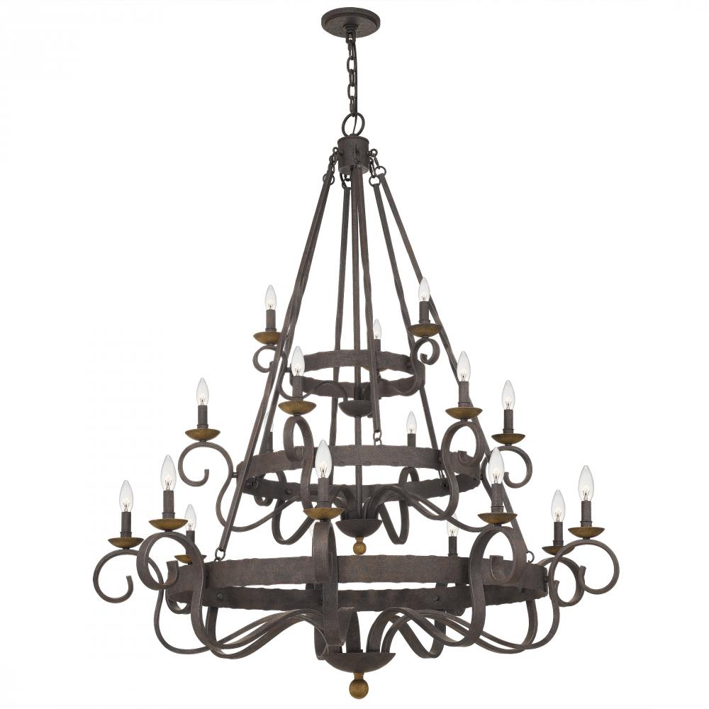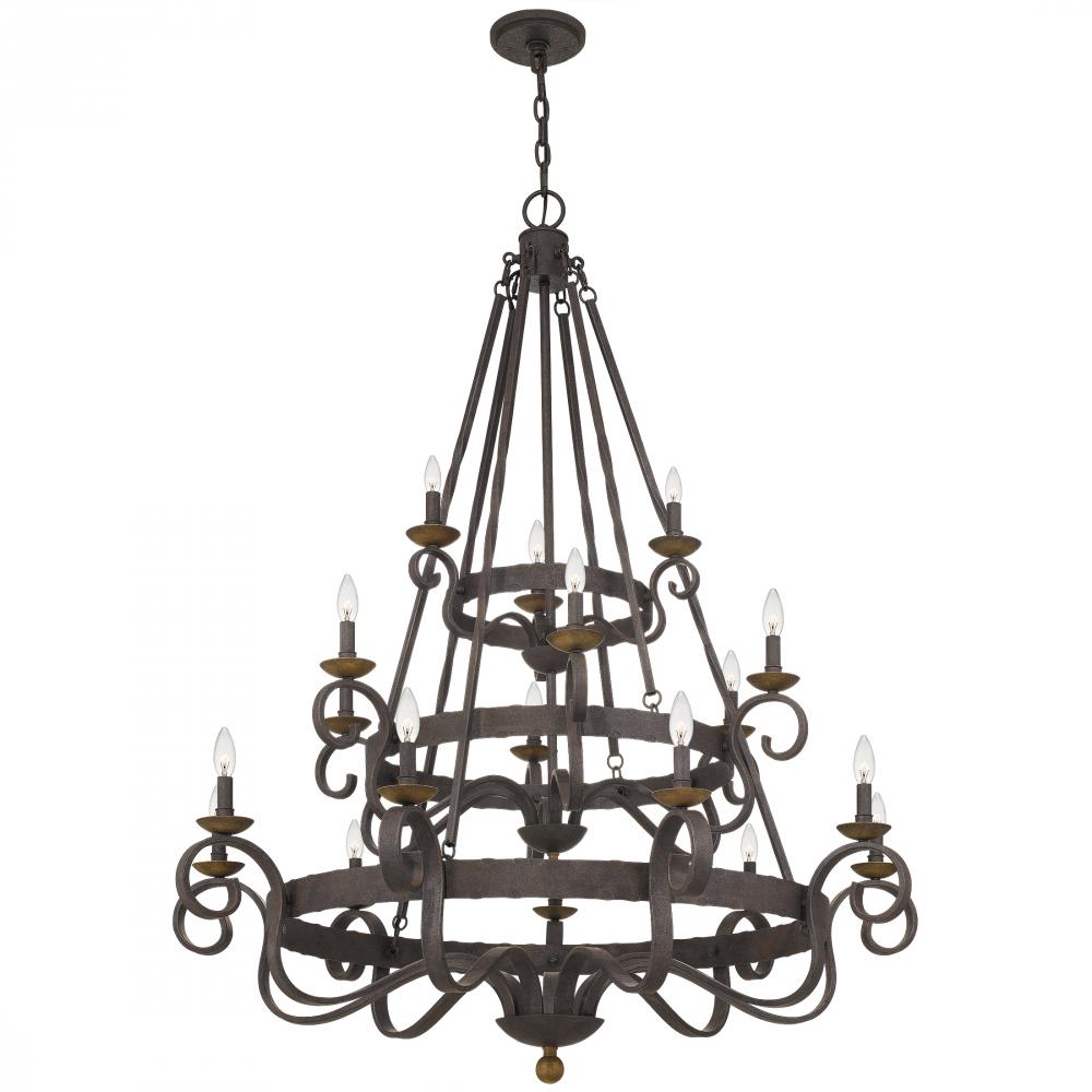 Sometimes, the name says it all. The Noble chandelier radiates magnificent style through a tiered, overscale structure. With nods to opulent Spanish design, this chandelier comes in a rustic black finish featuring honeyed bronze candle cups and finials. Be