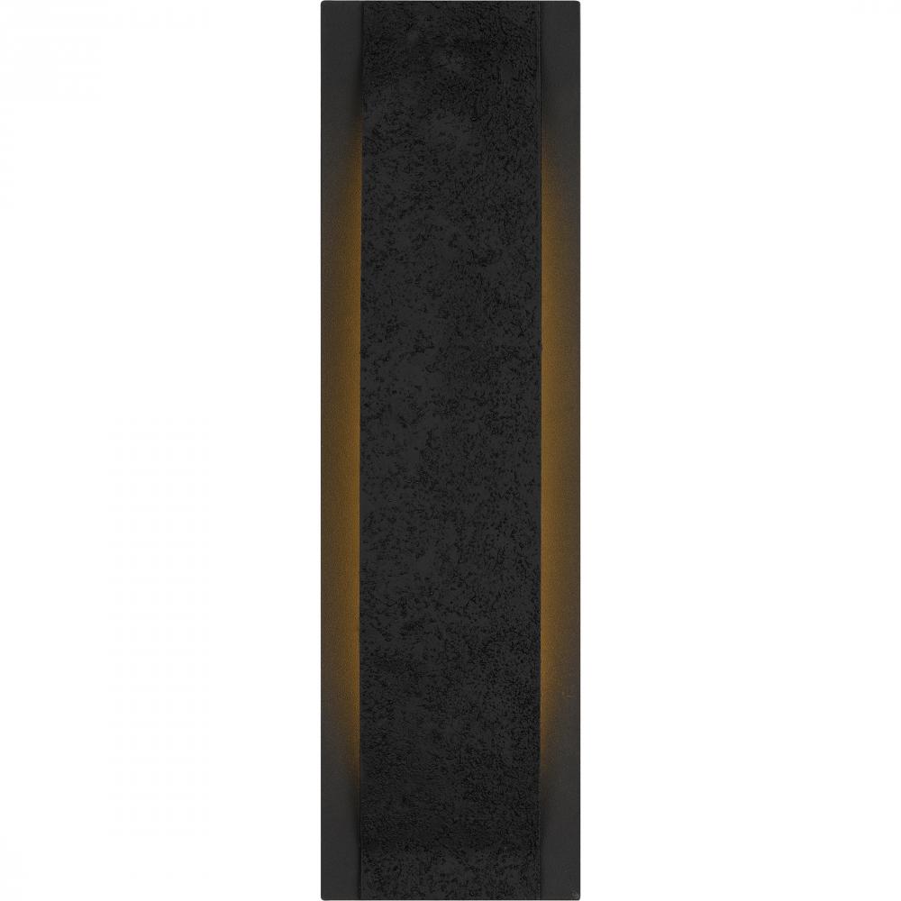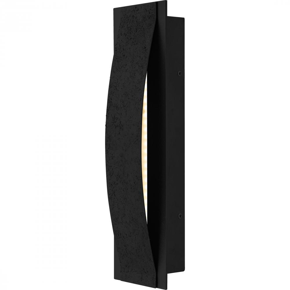 The Onyx outdoor wall sconce adds a touch of contemporary luxury to your homes exterior. The gently curved silhouette is finished in a sophisticated earth black and complemented by a unique textured front panel that resembles concrete. This textural detail