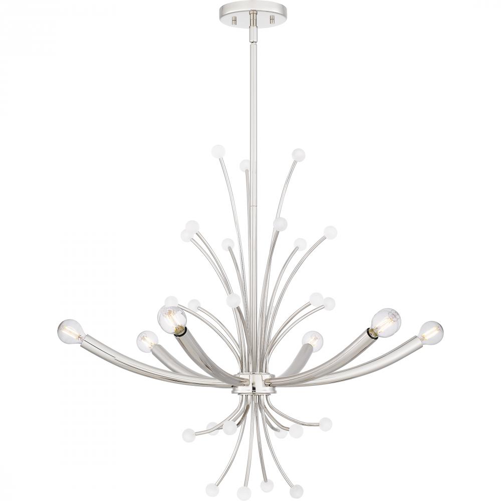 Kiera radiates on-trend, modern style. The captivating chandelier features a futuristic design with sleek, curving lines and small white spherical accents. Kiera is available in two beautiful finishes - choose brushed weathered brass for a slightly retro v