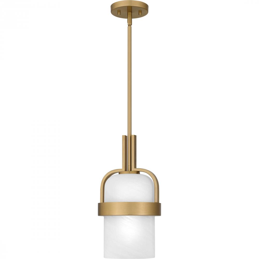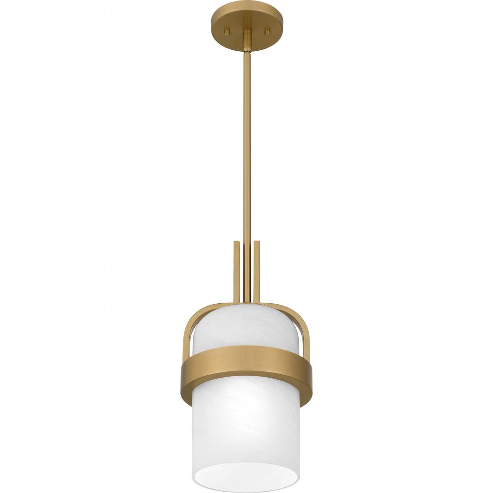 Add a modern feel to your home with the Duval mini pendant. A simple cylindrical silhouette combined with alabaster glass creates interest without sacrificing light. With an aged brass finish and matching geometric accents, Duval is the perfect addition to