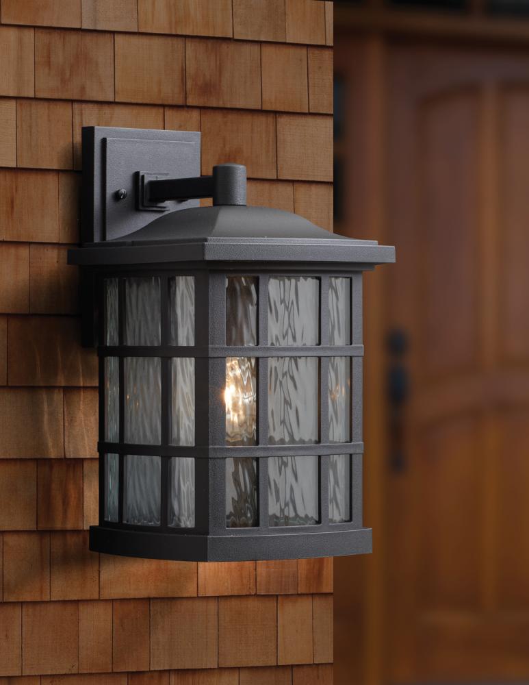 A design inspired by classic Arts and Crafts, the Stonington outdoor collection features clear water glass for added visual interest and a design that appeals to traditional homes as well. It is available in three versatile finishes which will complement m