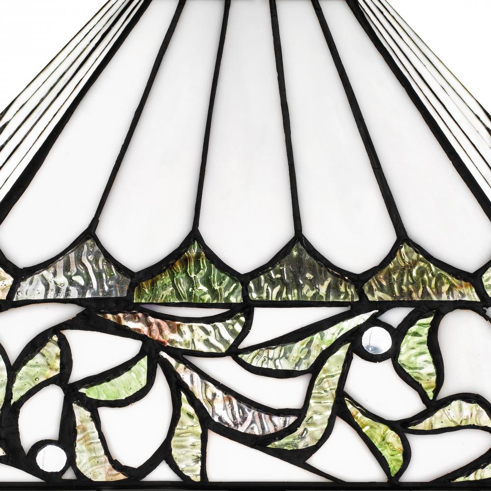 The Galahad table lamp is as pretty as it is functional. The classic design features a matte black finish and a handcrafted, white Tiffany glass shade with a multicolored floral motif. Each piece of glass is hand assembled, creating a one-of-a-kind stateme