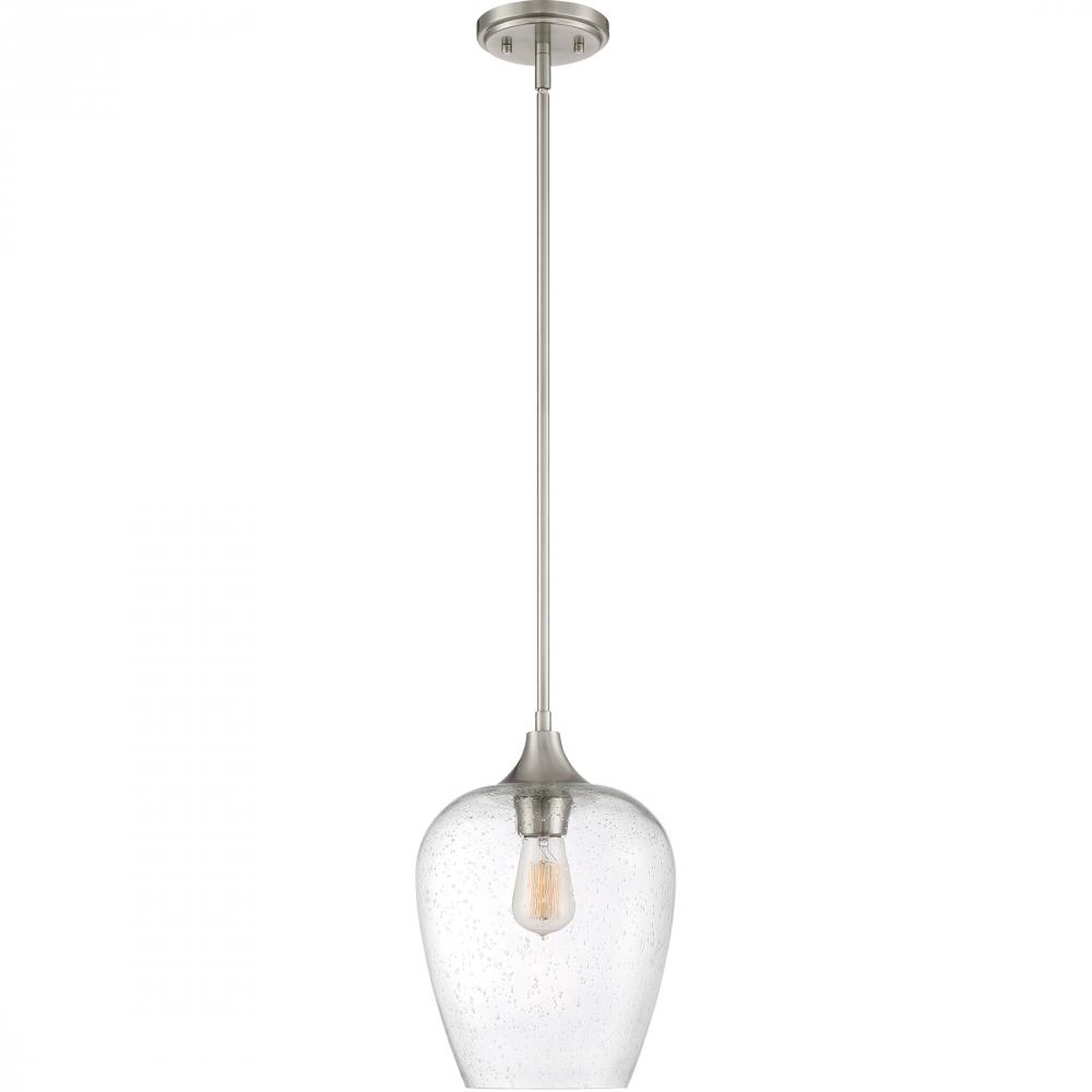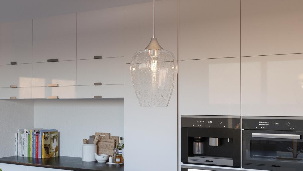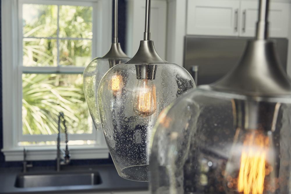 Contemporary fittings and attention to detail are the secrets to the Townes success. Tapered shades in clear seedy glass pair effortlessly with the bodys brushed nickel finish. Layered arms extend beyond the candle supports, contributing to the contemporar