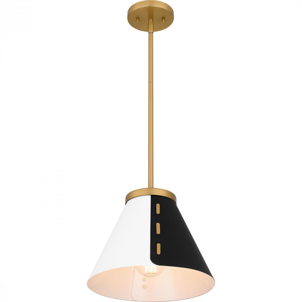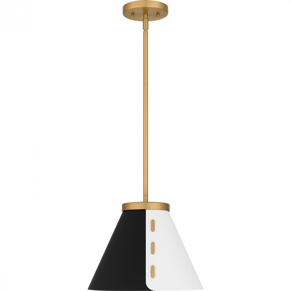 Trette semi-flush mount or pendant lights feature a fun, color block design that pairs well in any modern or contemporary setting. The black and white metal shade is complemented by a brushed weathered brass finish, adding a touch of luster to the sleek si