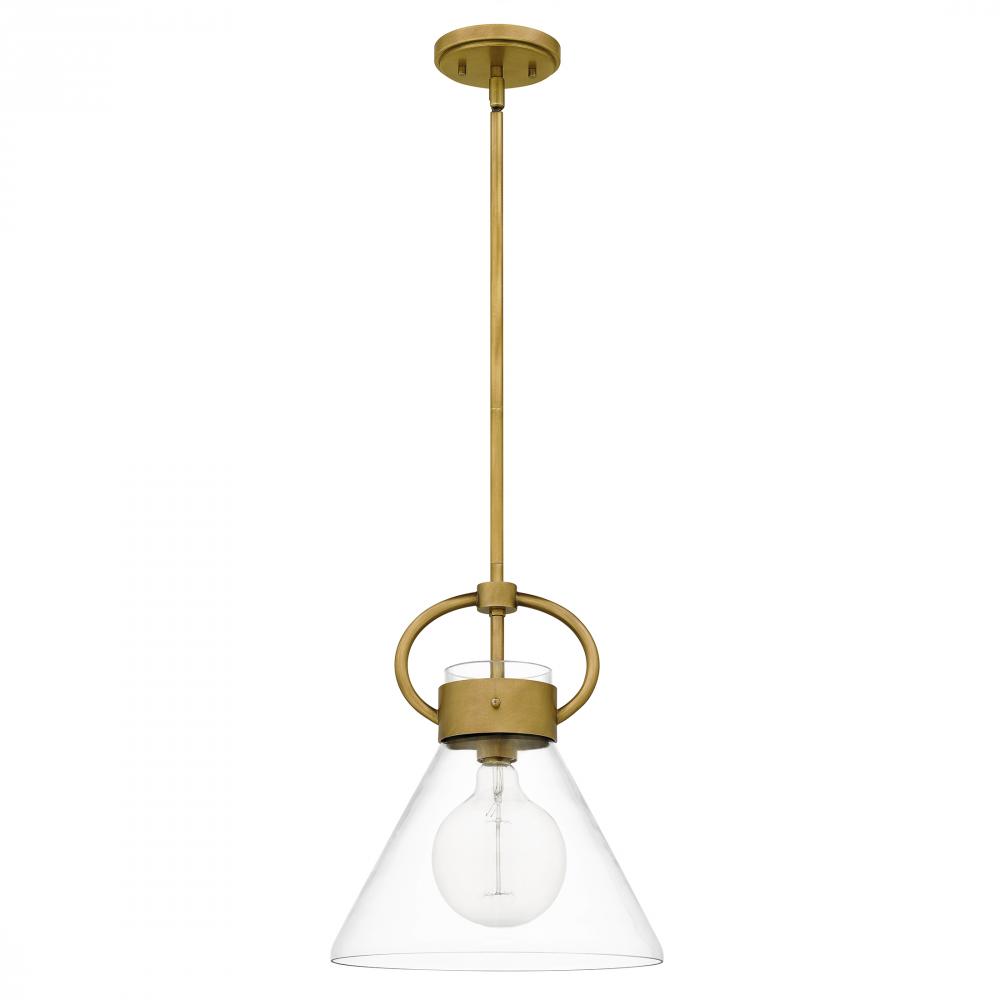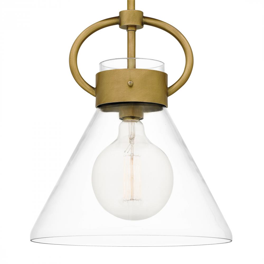 As a pendant, Webster casts a smart and tidy glow thanks to its clear glass shade. This industrial-inspired piece offers a subtle radiance and patina thanks to its weathered brass finish. Webster is also available as a semi-flush mount or larger island li