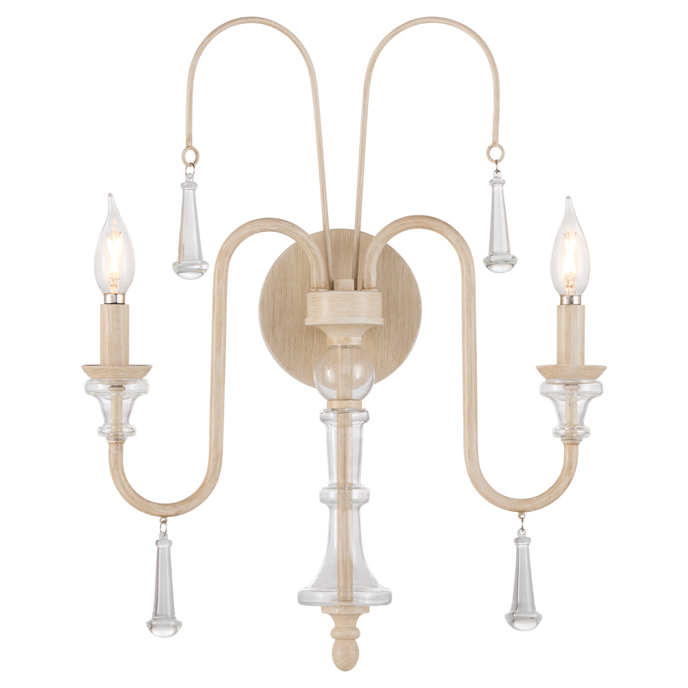 Clasica brings European-inspired elegance to any space with its romantic and traditional design. The washed oak finish works seamlessly with the shaped glass detail. Its soft, weathered tones complement the smooth, sculpted form, creating a delicate and distinguished look. Bold glass crystals hang from the arms, adding a touch of luxurious brilliance that enhances the fixture’s elegant silhouette. Available in multiple light configurations to suit a variety of settings.